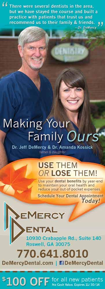 North Fulton Family Life welcomes your comments, stories and advertisements. The viewpoints of the advertisers, columnists and submissions are not necessarily those of the Editor/Publisher and the Publisher makes no claims as to the validity of any charitable organizations mentioned. North Fulton Family Life magazine is not responsible for errors and omissions. No part of this publication may be reproduced or transmitted in any form or by any means without the written permission from the Publisher.