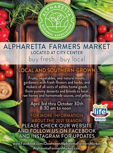 Alpharetta Farmers Market — Each Saturday, this market features farmers with fruits, vegetables, and natural meats; gardeners with fresh flowers and herbs; and makers of various homemade goods from desserts and breads to local raw honey and sauces, jellies, and soaps. FREE admission. 8:30am-12:00pm, Village Green by Alpharetta City Hall, 2 Park Plaza, Alpharetta. 678-2976000. AlpharettaFarmersMarket.com