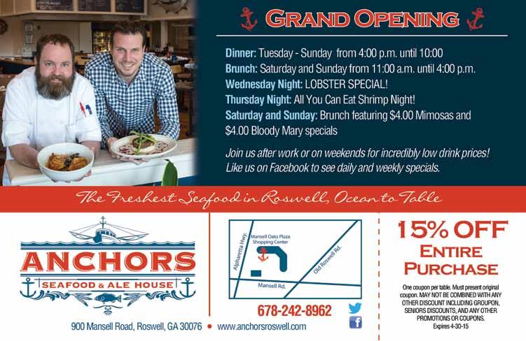 18 RNE F Spring Soiree The Paris-theme spring soiree and silent auction hosted by The Roswell North Elementary Foundation includes a silent auction, dinner and dancing. Proceeds benefit the Licata Science Lab and the Foundation’s educational initiatives. Tickets are $75 per person. 7:00 – 11:00 p.m. Country Club of Roswell. 678-549-1200. AWilliamsPr@ gmail.com