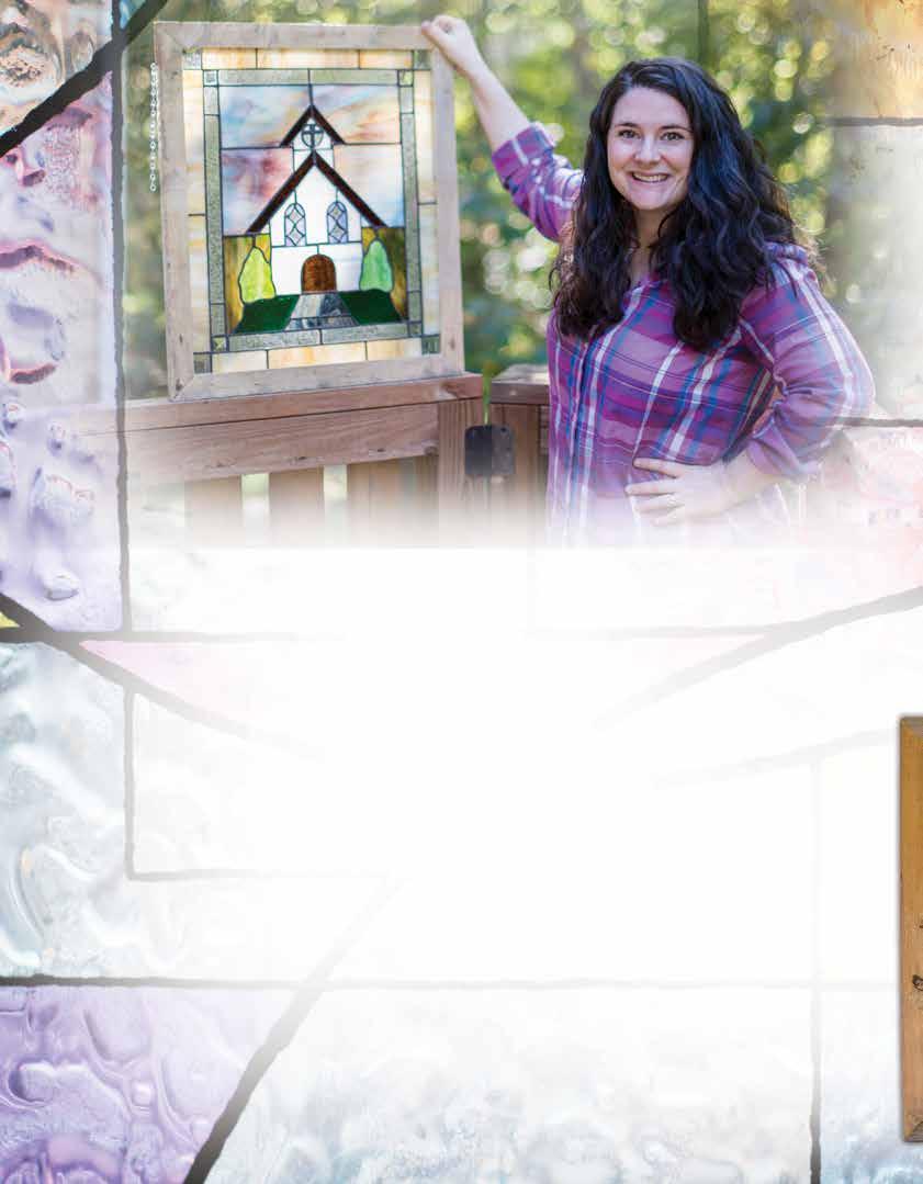 Stained glass creator Tristan Tuttle has always been an artist of some sort. When she was a child, she sang and played bluegrass-gospel music in her father’s prayer meetings. At 15, she started teaching guitar, mandolin, and dog-house bass. After earning a degree in English, Tuttle became a freelance writer. Now, from her home studio in Ball Ground, she shares her vibrant spirit as the artist and owner of Reflecting Light Stained Glass.