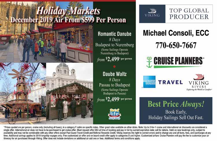 Michael Consoli is a professional travel and cruise specialist and owner of Cruise Planners. 770-650-7667. PlanMyCruise.com