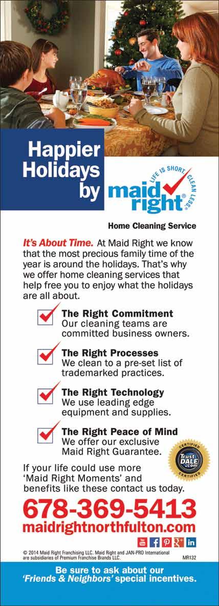 North Fulton Community Charities (NFCC) assists North Fulton families with rent, utilities, transportation, food, clothing, medicine and other basic needs during short-term emergencies and longterm financial distress. In addition, NFCC provides special programs throughout the year to help relieve any additional financial stress and preserve family traditions. NFCC is seeking volunteers, donations of new toys, new or gently used warm coats, and non-perishable food items for its annual holiday program. Holiday@NFCCHelp. org, NFCCHoliday.org