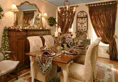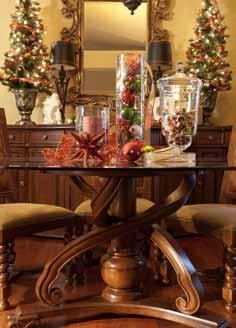 For the rustic look, select an oblong wooden bowl and fill it with an assortment of handmade Christmas ornaments and small evergreen branches. Another simple, but dramatic centerpiece idea can be created by arranging crystal candleholders of varying heights in the center of a crystal bowl or cut glass cake stand. Then, circle the perimeter of the plate with small crystal votive candles. Special touches like these will make this year’s holiday entertaining the best ever! L