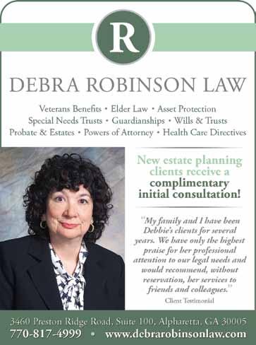 Debra Robinson is an attorney in Alpharetta. 770-817-4999, DebraRobinsonLaw.com