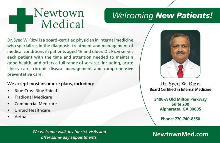 opportunity for walkers to ask one-onone questions with the participating physician. 10:00am, Newtown Park, 3150 Old Alabama Road, Johns Creek. WalkWithADoc.org