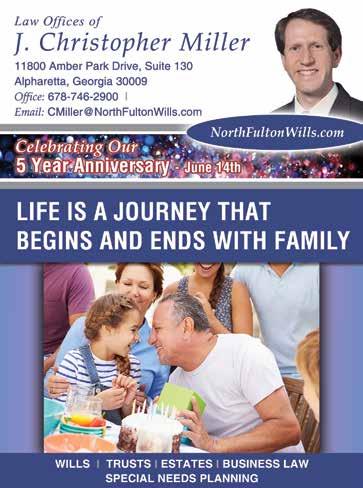 The viewpoints of the advertisers, columnists, and submissions are not necessarily those of the editor/publisher, and the publisher makes no claims as to the validity of any charitable organizations mentioned. The cover and its accompanying magazine content are a paid advertisement. North Fulton Family Life magazine is not responsible for errors or omissions. No part of this publication may be reproduced or transmitted in any form or by any means without written permission from the publisher.