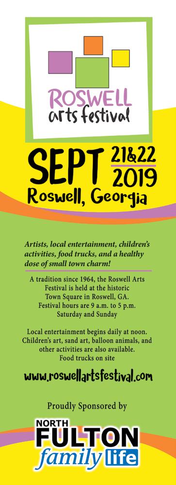 The Roswell Arts Festival will be held the weekend of September 21-22 on the Roswell Town Square. In its 53rd year, the event raises funds to support the Roswell Recreation, Parks, Historical and Cultural Affairs Department special projects and programs. This year’s event will feature more than 70 artists as well as live music and demonstrations.