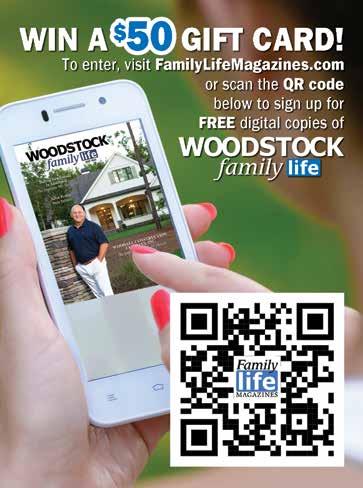 The viewpoints of the advertisers, columnists, and submissions are not necessarily those of the editor/ publisher, and the publisher makes no claims as to the validity of any charitable organizations mentioned. The cover and its accompanying magazine content are a paid advertisement. Woodstock Family Life magazine is not responsible for errors or omissions. No part of this publication may be reproduced or transmitted in any form or by any means without written permission from the publisher.
