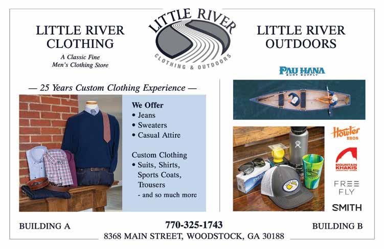 Little River Clothing and Outdoors’ goal is for you to enjoy not only shopping local but also the whole experience. When you walk into their stores, you will notice a helpful and professional staff combined with a very comfortable environment. You shouldn’t have to drive to Atlanta to enjoy nice quality. Visit Little River Clothing and Outdoors, and satisfy all your weekend-casual and businessformal needs, all conveniently located in downtown Woodstock. They are excited to welcome you!