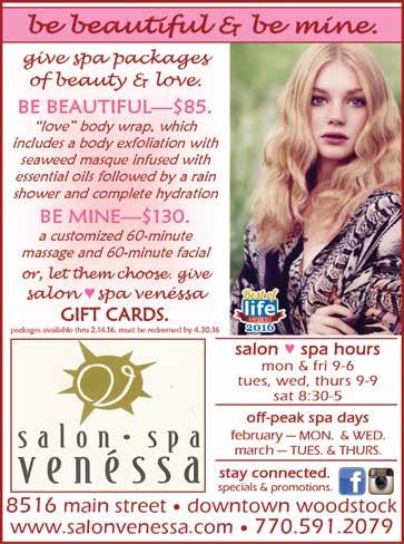 Christine’s Creations would like to thank their loyal customers for a wonderful 2015, and for voting for them to win in the “Best Furniture/ Home Design” category in Woodstock. They were inadvertently left out of the announcement listing in the January Woodstock Family Life issue. They have big plans for 2016, starting with design classes to “Help You Help Yourself.” 8494 Main St., Woodstock. 770-591-5944. Facebook.com/ ChristinesOfWoodstock