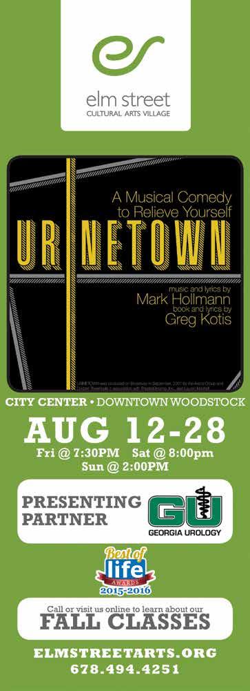 In a Gotham-like city, a terrible water shortage, caused by a 20-year drought, has led to a government-enforced ban on private toilets. The citizens must use public amenities, regulated by a single, malevolent company that profits by charging admission for one of humanity’s most basic necessities. This production is a PG-rated musical comedy. Fridays at 7:30 pm, Saturdays at 8:00 pm and Sundays at 2:00 pm, Elm Street Cultural Arts Village, 8534 Main Street, Woodstock. 678-494-4251. ElmStreetArts. org