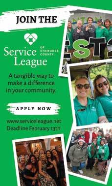 Service League Gala and Benefit — This black-tie optional, community-wide event raises money for children in need in Cherokee County and honors a community member with the annual Heritage of Hope Award Tickets are $150 per person 6:00pm, Timbers on Etowah, 225 Reformation Parkway, Suite 202, Canton. ServiceLeague.net