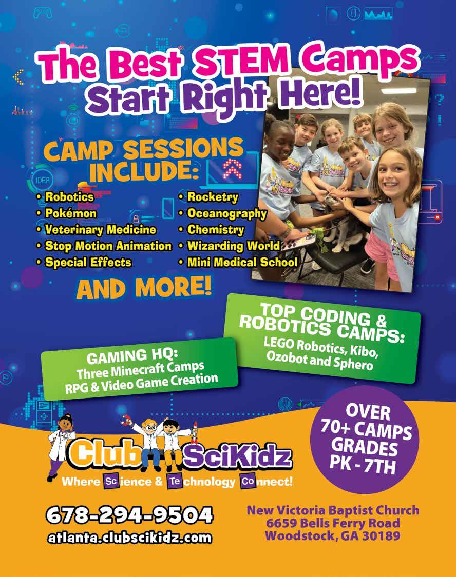 Parent’s Night Out Kids will make arts and crafts, play in the pool, eat pizza, and watch a movie. $30-$35 per child. 5:3010:00pm, Cherokee County Aquatic Center, 1200 Wellstar Way, Canton. 678-880-4760. PlayCherokee.org