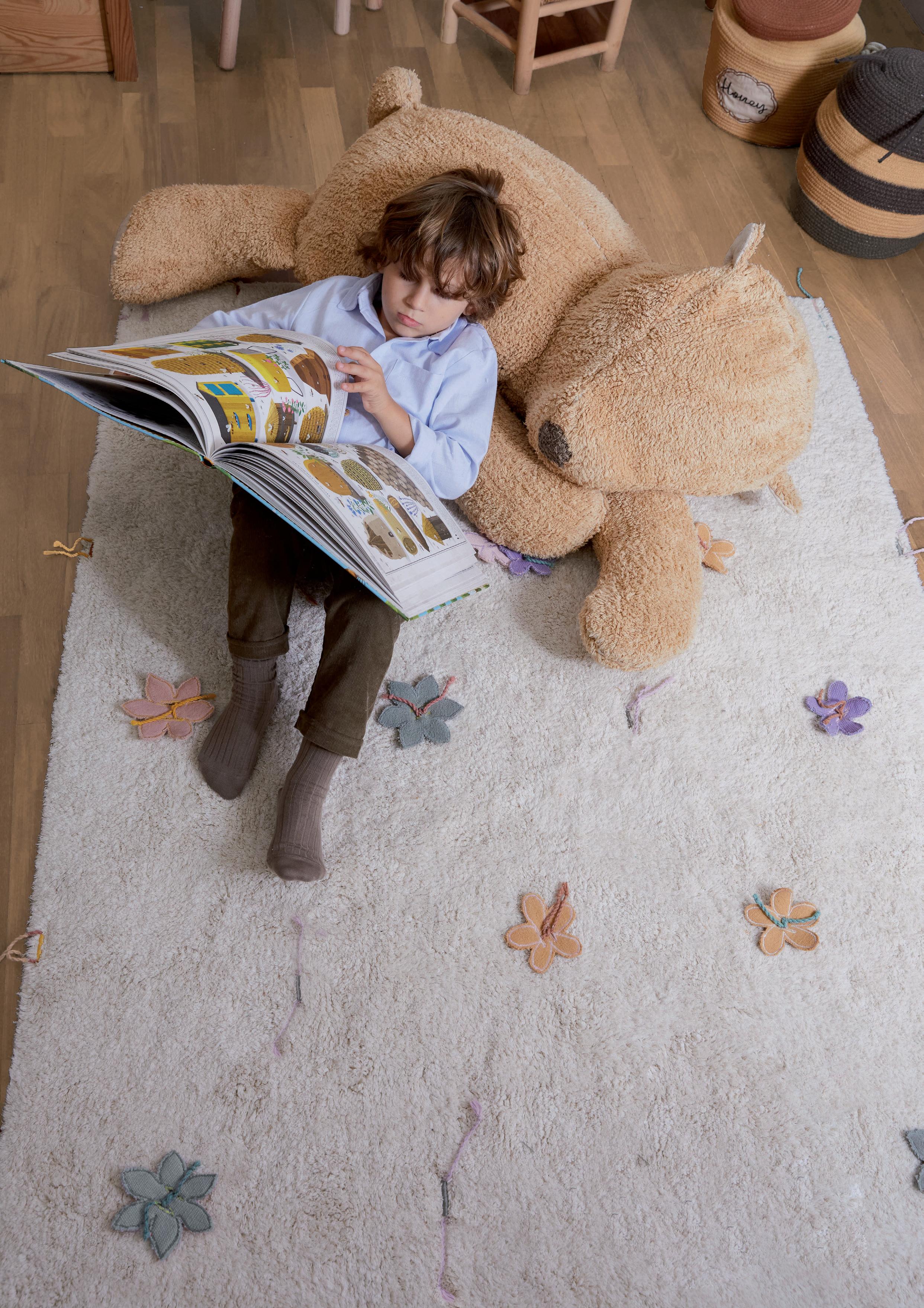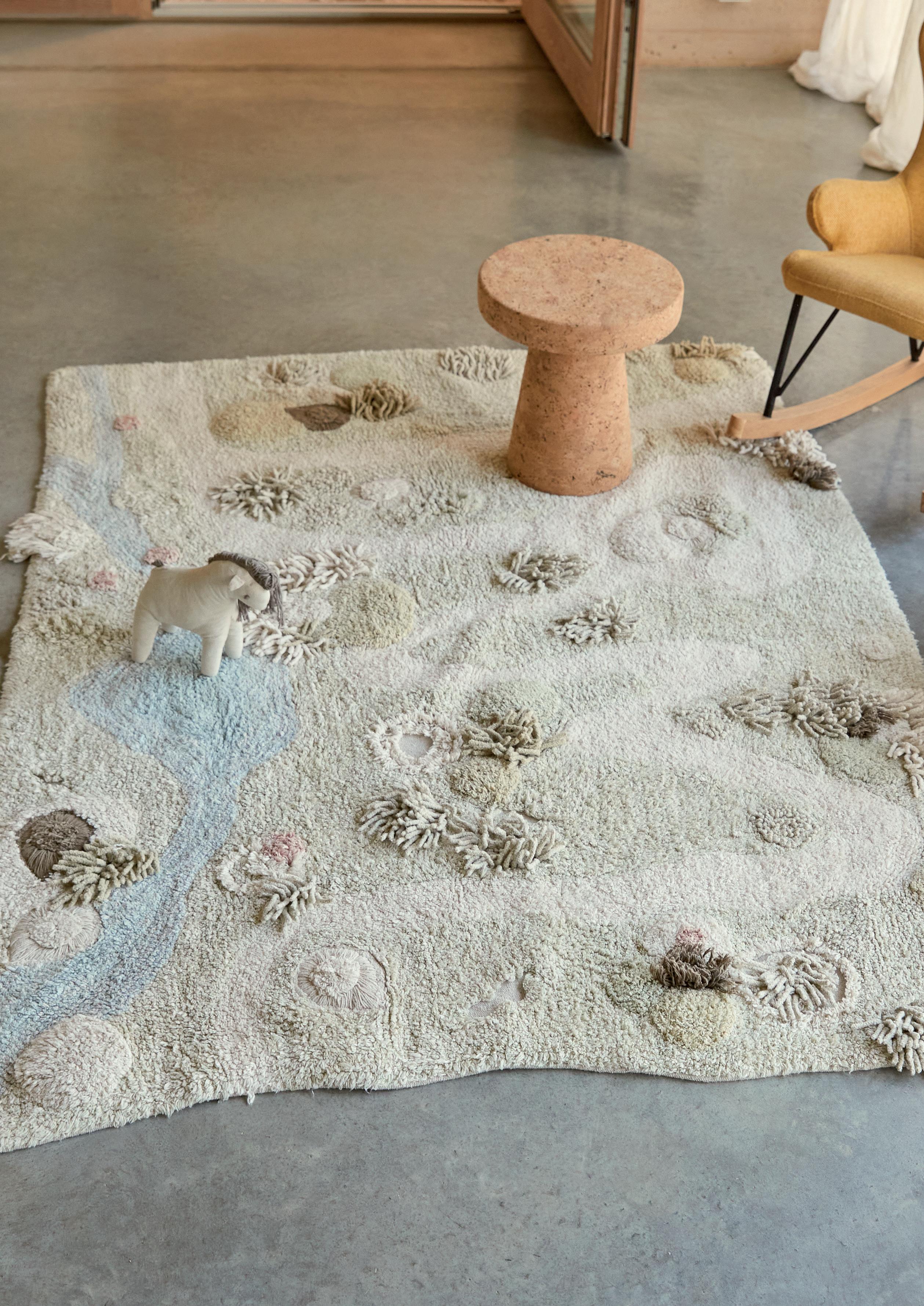 One of the main objectives of our company is to innovate every day, in all our areas. That is why we invest in researching new techniques, new designs, new artisanal processes, or new ways of manufacturing in a sustainable way. Thus, we shake the industry not only with our washable or recycled rugs, but also with interactive rugs for children that encourage learning, textile books and toys inspired in healthy and sustainable lifestyle, etc.