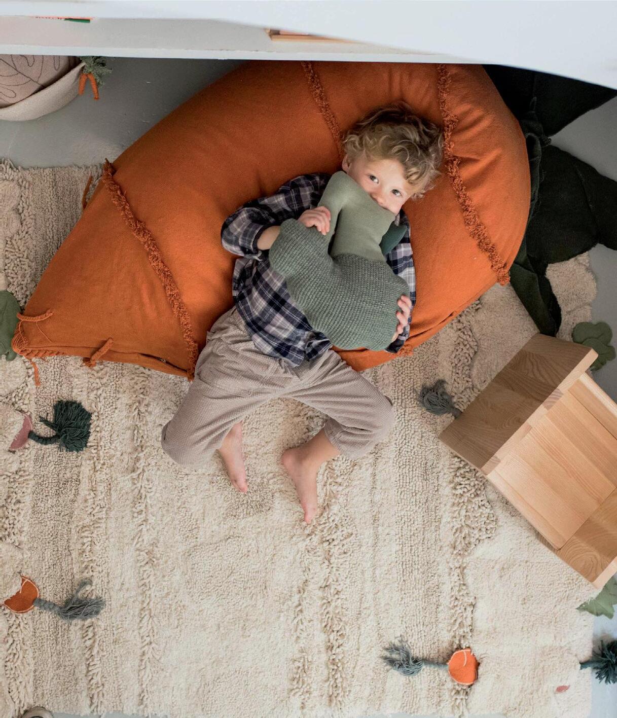 Shaped rugs with a cushion inserted in its design, all-in-one! Discover this innovative concept.