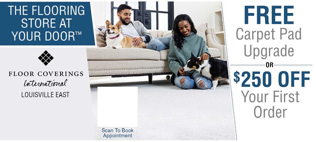 Helping YourBeauty Reach Its Full Potential. Dysport (50 Units) $175 Dermal Fillers Buy 1 For 15% OFF Buy 2 For 25% OFF Both Z Wave For Cellulite Buy 1 Treatment, Get 2nd One FREE Xeomin (18 Units) & Lumiere Eye Cream (15mL) $199 OVER $300 VALUE! www.uralluring.com 113 Snapp Street • Mt. Washington Corner of Snapp and Old Bardstown Rd. Offers valid thru September 30, 2023 GIFT CERTIFICATES AVAILABLE! Call 502-538-2094 to schedule an appointment! HUGE SELECTION IN-STOCK & Ready For Immediate Installation We Carry All Major Brands F Next-Day Installation Available Lifetime Warranties We'll Beat ANY Competitors' Prices INCLUDING Home Centers! FREE ESTIMATES 7210 Fegenbush Ln. F 502-233-2864 Family Owned & Operated Since 1982 LOUISVILLE HITECH FLOOR COVERING .COM LUXURYVINYL PLANKS SQ. $1.89/FT. CASH & CARRY SQ. $1.99/FT. CARPET INSTALLED WITH PAD With coupon. Not valid on previously quoted jobs or with other discounts. Limit 1 discount per customer. Expires 09-30-23. FREE PAD UPGRADE WITH CARPET PURCHASE With coupon. Not valid on previously quoted jobs or with other discounts. Limit 1 discount per customer. Expires 09-30-23. BEAUTIFUL HOMES BEGIN WITH BEAUTIFUL FLOORING. CARPET F LUXURY VINYL PLANKS F VINYLS LAMINATES F HARDWOODS