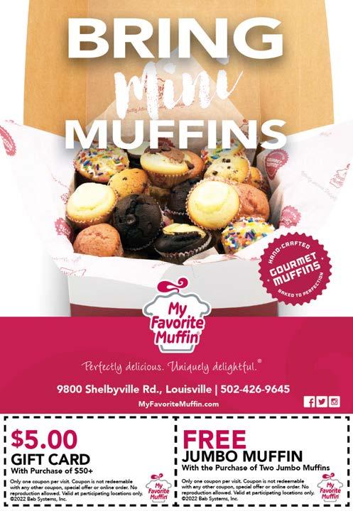 Dine In • Drive Thru • Delivery • Order Online: Schlotzskys.com Springhurst Shopping Center • 10531 Fischer Park Dr. 502-425-8447 @schlotzskys • schlotzskys.com ©2023 Schlotzsky's Franchisor SPV LLC. All rights reserved. 489271 FREE KID'S MEAL WITH PURCHASE OF ENTRÉE & DRINK (Limit one free meal. Not valid on combo meals.) Offer expires 09/30/2023. Valid only at Schlotzsky's restaurant located at 10531 Fisher Park Dr., Louisville, KY. Not valid with any other offer. One coupon per person, per visit. Tax and gratuity not included. Sale, resale and/or Internet distribution strictly prohibited. Customer pays sales tax. Void where prohibited. Cash value 1/100¢. No cash back. Additional exclusions may apply. Good only with original coupon at participating Schlotzsky's® restaurants. CODE: 605 FREE MEDIUM SANDWICH WITH PURCHASE OF ANY MEDIUM SANDWICH AND 20-OZ. DRINK Offer expires 09/30/2023. Valid only at Schlotzsky's restaurant located at 10531 Fisher Park Dr., Louisville, KY. Not valid with any other offer. One coupon per person, per visit. Tax and gratuity not included. Sale, resale and/or Internet distribution strictly prohibited. Customer pays sales tax. Void where prohibited. Cash value 1/100¢. No cash back. Additional exclusions may apply. Good only with original coupon at participating Schlotzsky's® restaurants. CODE: 151 FREE BAG OF CHIPS & 20-OZ. FOUNTAIN DRINK WITH PURCHASE OF ANY MEDIUM OR LARGE SANDWICH, PIZZA OR FLATBREAD Offer expires 09/30/2023. Valid only at Schlotzsky's restaurant located at 10531 Fisher Park Dr., Louisville, KY. Not valid with any other offer. One coupon per person, per visit. Tax and gratuity not included. Sale, resale and/or Internet distribution strictly prohibited. Customer pays sales tax. Void where prohibited. Cash value 1/100¢. No cash back. Additional exclusions may apply. Good only with original coupon at participating Schlotzsky's® restaurants. CODE: 4181 TRY OUR FIESTA CHICKEN SANDWICH! HIGHLANDS LOCATION | 1534 Bardstown Rd Louisville | 742-4119 J-TOWN LOCATION | 9909 Taylorsville Rd Jeffersontown | 384-2154 SPRINGHURST LOCATION | 3550 Springhurst Commons Dr Louisville | 749-6847 BUY 2 TACOS, GET 1 TACO * FREE *OF EQUAL OR LESSER VALUE. DINE-IN ONLY. Must present coupon. Cannot be combined with any other coupon or daily special. Expires 09-30-23. www.Ilovetacoslouisville.com $500 OFF FOOD PURCHASE OVER $25 *EXCLUDES ALCOHOL, TAX & GRATUITY. DINE-IN ONLY. Must present coupon. Cannot be combined with any other coupon or daily special. Expires 09-30-23. NOW OPEN! $500 OFF ANY PUCHASE OF $30 OR MORE *DINE-IN ONLY. EXCLUDES TAX & GRATUITY. Must present coupon. Cannot be combined with any other coupon or daily special. Expires 09-30-23. 241 Blankenbaker Pkwy www.ilovepollo.com LATIN-STYLE ROTISSERIE CHICKEN, FRESH CUISINE & DELICIOUS SIDES