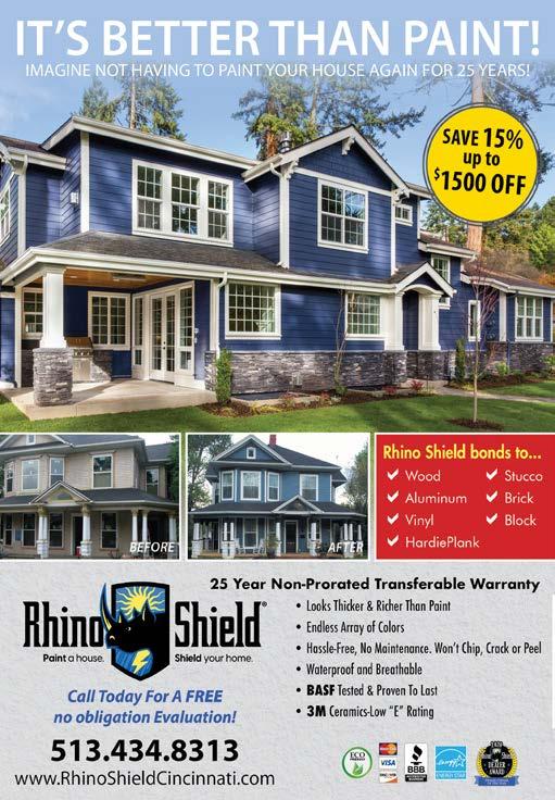Windows • Doors • Siding • Trim • FREE, IN-HOME CONSULTATIONS! • FREE ESTIMATES AT SHOWROOM! • Consult directly with owners Kevin Denton, Steve Hilton & Tony Kilburn (No Salesmen! No Commissions!) • 100% Financing, Zero Down & Many Financing Options! WINDOWS $ 299 812-949-9473 2635 Charlestown Road • New Albany Corner of McDonald Lane www.windowwisellc.com ANY SIZE INSTALLED * *MINIMUM PURCHASE OF 3 WINDOWS. All-Welded, Double-Pane, Double-Hung White Replacement Windows Only. Other terms & conditions may apply. Sorry, no rental properties. WindowIncludes& Installation! THE "WORRY-FREE" WAY TO ENTERTAIN! ALL PADS CUSTOM MADE FOR A PERFECT FIT Protects from Scratches, Heat, Stains, Spills, Burns, Dents and Watermarks (502) 345-7237 (447-3566) DURAGUARD CUSTOM TABLE PADS - LOUISVILLE, KY 40% OFF ANY STYLE TABLE PAD Available in Woodgrain, Leathertone or Solid Top Colors. Limit one coupon per household. Not valid with any other offer or discount. Expires 11-30-23. CUSTOM TABLE PADS Easy On Easy Off Serving Kentuckiana Since 1991 PROTECTING: • Dining Tables • Conference Tables • Kitchen Tables • Glass-Top Tables CALL NOW! FREE MEASURING SERVICE! Rating with the BBB EXTERIORS (VINYL SIDING, STUCCO & BRICK) | GUTTERS | DRIVEWAYS | SIDEWALKS DECKS | PATIOS | POOL DECKS | FENCES | WINDOW CLEANING | AND MORE! Call The Cleaning Pros Today To Schedule A FREE ESTIMATE! 502-767-3236 www.garrettspressurewashing.com RESIDENTIAL & COMMERCIAL Licensed & Insured AFTER BEFORE AFTER BEFORE $ 75 OFF ROOF CLEANING With coupon at time of estimate. Not valid on previously completed services or with any other offer or discount. Expires 11-30-2023. $ 50 OFF HOUSE WASHING With coupon at time of estimate. Not valid on previously completed services or with any other offer or discount. Expires 11-30-2023. ANY SIZE! $ 100 OFF CONCRETE CLEAN & SEAL With coupon at time of estimate. Not valid on previously completed services or with any other offer or discount. Expires 11-30-2023. $ 100 OFF DECK STAINING With coupon at time of estimate. Not valid on previously completed services or with any other offer or discount. Expires 11-30-2023. AFTER BEFORE AFTER BEFORE PROTECT YOUR CONCRETE BEFORE WINTER!