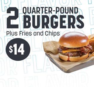 EVERY MONDAY: LIVE MUSIC 5:30–7:30PM EVERY TUESDAY: KARAOKE 6PM–9PM WEDNESDAY NIGHTS: CORN HOLE & TRIVIA NIGHT EVERY THURSDAY: KARAOKE 6PM–9PM FREE BURGER, SANDWICH OR SALAD WITH PURCHASE OF ANY BURGER, SALAD OR SANDWICH & 2 MEDIUM SOFT DRINKS Offer valid until 11/30/23 at Shelbyville, KY location only. Valid on dine in, online or carry out orders. Not valid for 3rd Party Delivery. Excludes alcohol. Free burger, sandwich or salad is of equal or lesser value. Not valid with other discounts or offers. Void if reproduced, altered or expired. No cash value. CODE: SHB1G1 $300 OFF ANY ONLINE ORDER OVER $20 Offer valid until 11/30/23 at Shelbyville, KY location only. Valid on online orders only. Not valid for 3rd Party Delivery. Excludes alcohol. $35 must be reached before tax. Not valid with other discounts or offers. Void if reproduced, altered or expired. No cash value. CODE: SHOLO $20 OFF ANY CATERING ORDER OVER $100 Offer valid until 11/30/23 at Shelbyville, KY location only. Valid on catering orders only. Not valid for 3rd Party Delivery. Excludes alcohol. $100 must be reached before tax and gratuity. Not valid with other discounts or offers. Void if reproduced, altered or expired. No cash value. CODE: SHCAT 1263 Mt. Eden Rd. • Shelbyville, KY 40065 • 502.437.2160 • wingsandrings.com DAILY SPECIALS! MONDAY: KIDS EAT FREE Limit 1 Free Kid's Meal per adult meal purchased. TUESDAY: 79¢ BONELESS WINGS WEDNESDAY: $ 1.29 CHICKEN TENDERS Valid only on 3 or 5-count baskets. THURSDAY: 89¢ TRADITIONAL WINGS SHELBYVILLE’S GAME-DAY HEADQUARTERS! ENJOY DELICIOUS FOOD & GREAT DRINKS WITH US ANYTIME... BUT ESPECIALLY DURING GAME TIME! COME JOIN THE FUN! NO LIMIT! NO LIMIT! (EVERY OTHER WEDNESDAY)