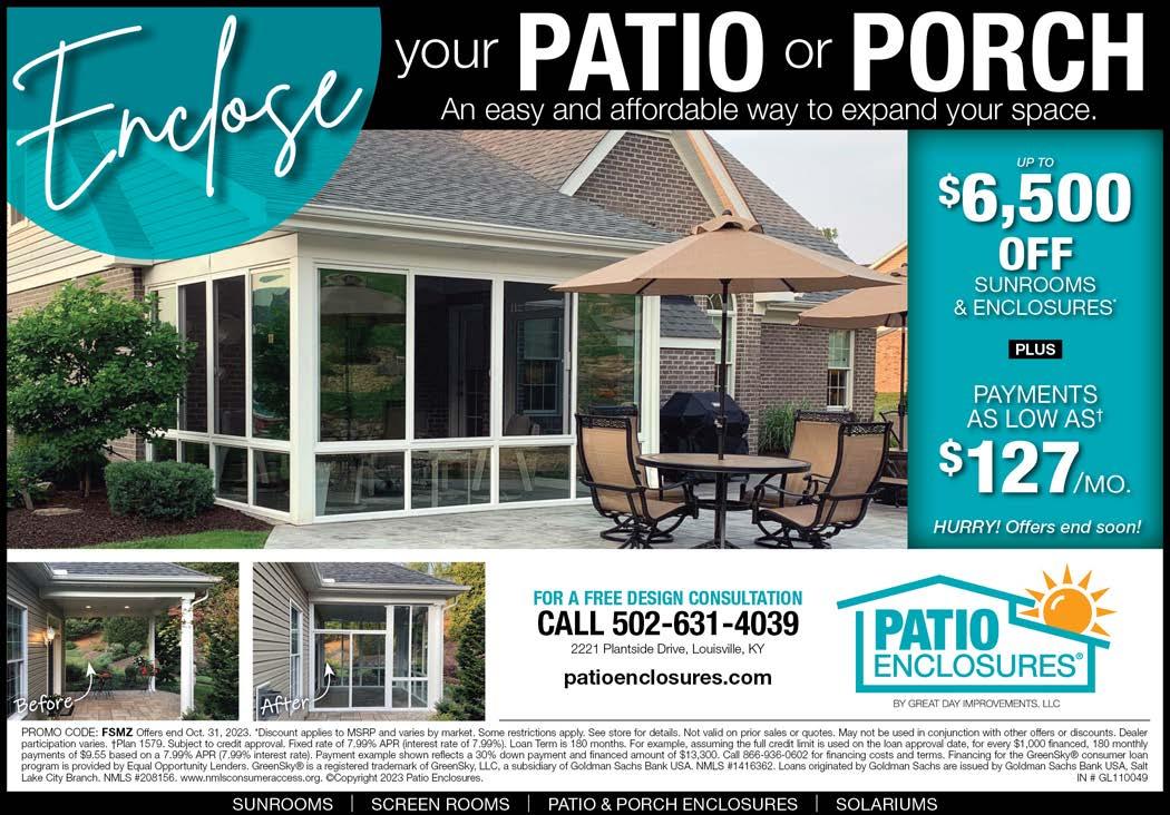 Call Us Today & Invite Us To Your Home For Your FREE CONSULTATION! 502-962-2500 www.EnterpriseHomeImprovements.com "They have the greatest customer experience... Professional... Courteous... Ready to find a solution to meet your need. Their craftsmanship is superior to none. Excellent customer service all the way!" – Duray A. of Bardstown Locally Owned Company 35% OFF YOUR NEXT PROJECT Minimum purchase required. Ask for complete details. Code: FSM1023 *Coupon CANNOT be applied to insurance work. Sorry, no adjustments can be made to prior sales or estimates. *Coupon must be presented at time of initial estimate to be valid. Credit offers subject to approval. *Offer expires 11-30-23.