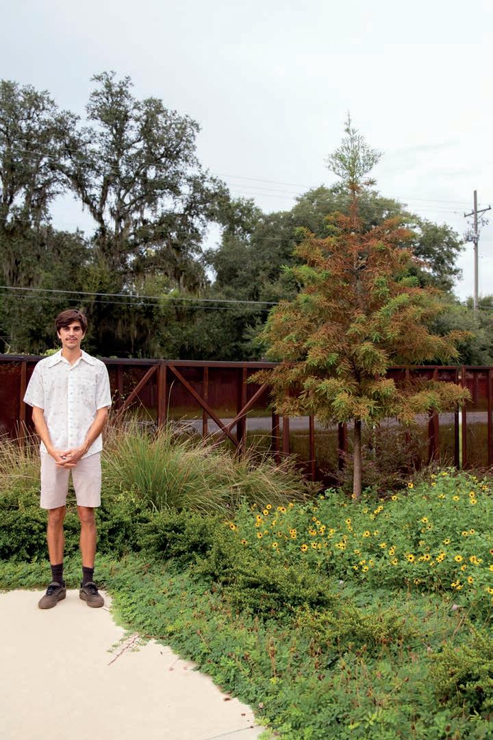 Artist Evan Galbicka in a corner of PULP Gardens, a landscape he has designed for PULP, an arts center in Gainesville, Florida. Evan describes this project as an interspecies