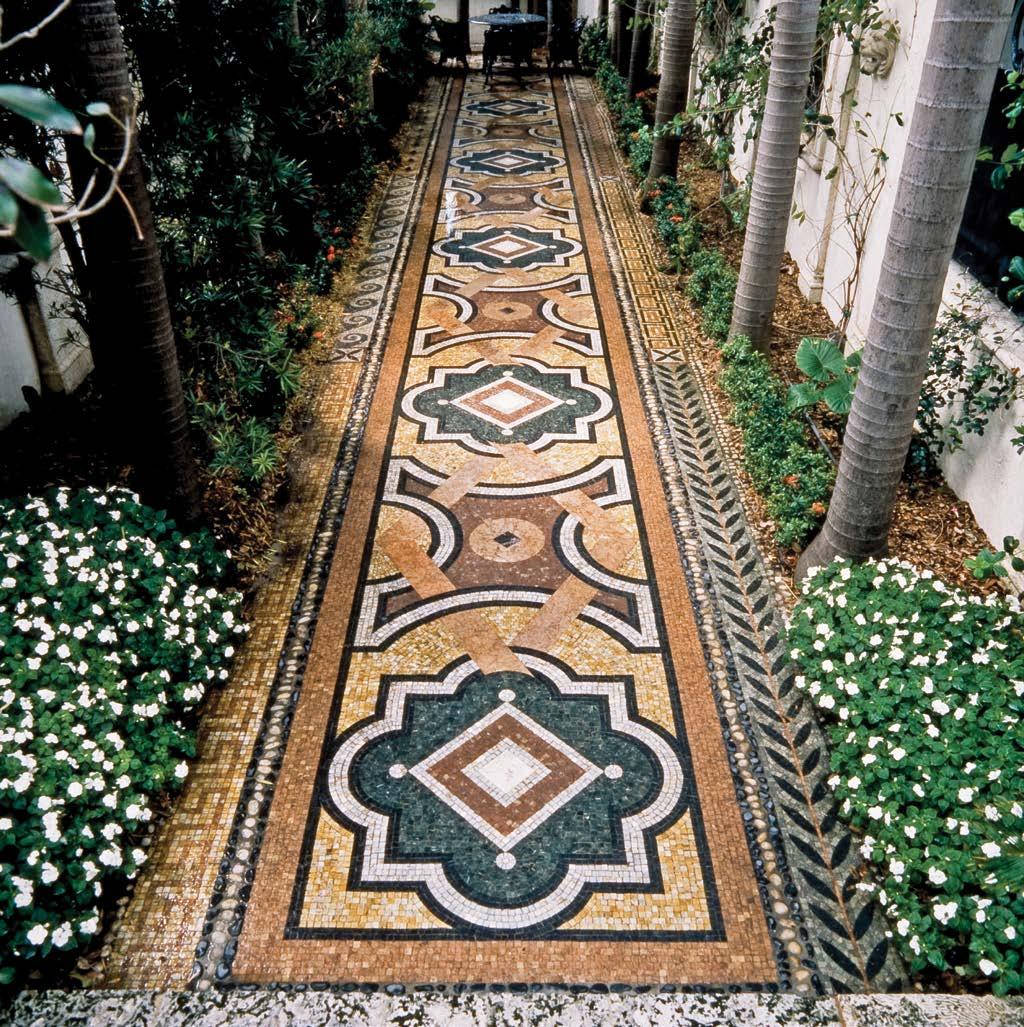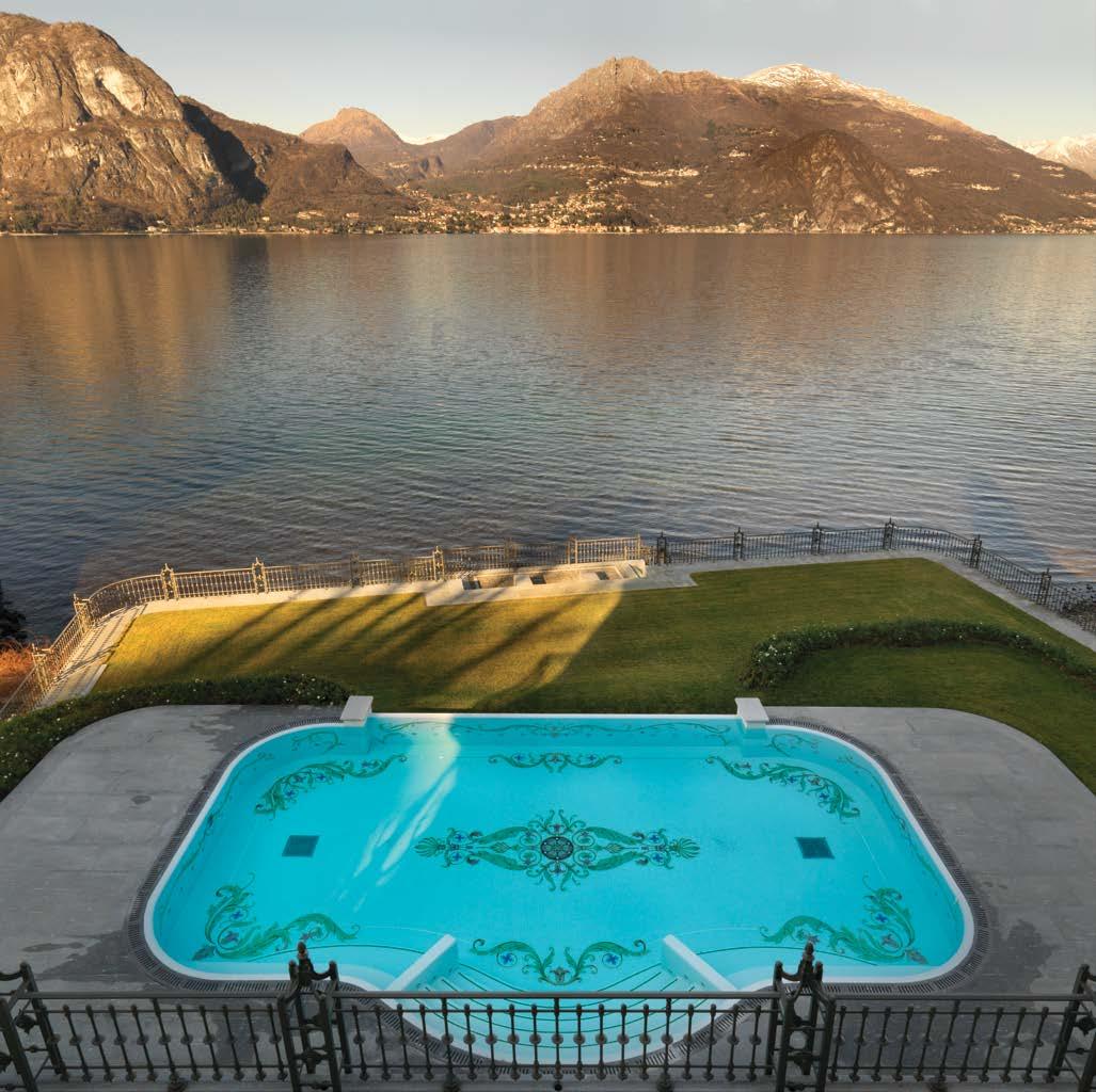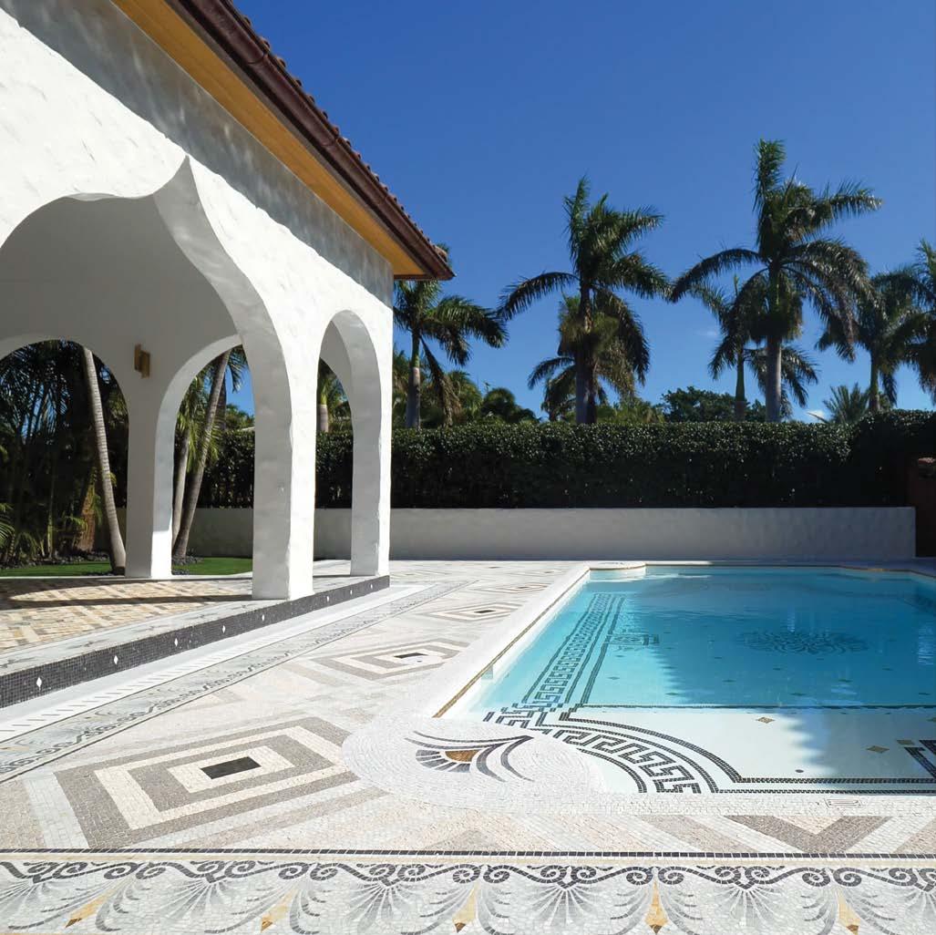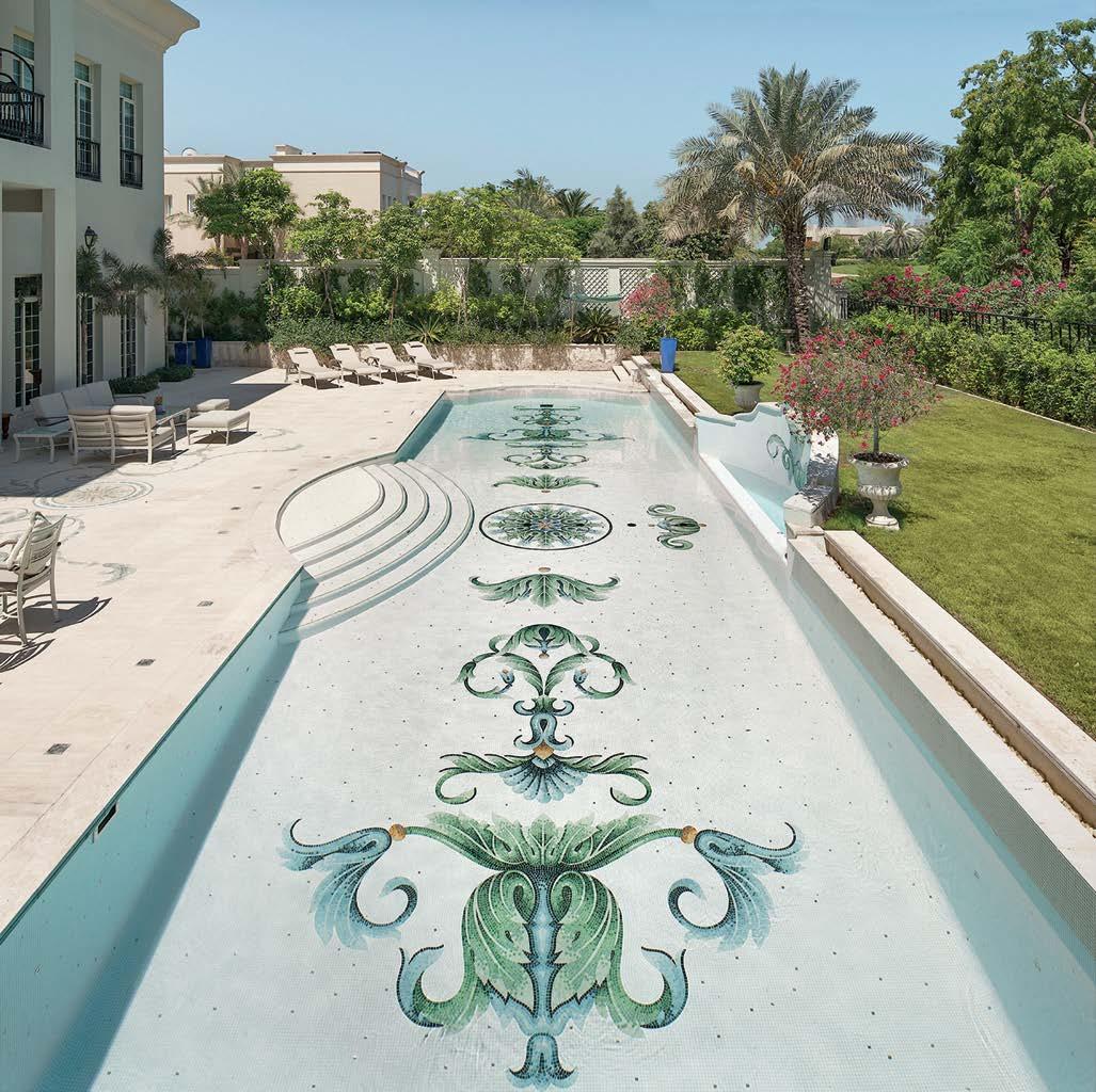 Their initial collaboration was for the late fashion designer’s villa in Moltrasio on Lake Como; this was followed by his Miami home, Casa Casuarina, which further inspired new artistic horizons for both. Meticulous and demanding, Versace trusted the company with his first Italian showroom, followed by his Paris boutique and then every Versace overseas outlet, as well as his Miami and New York homes. Fantini Mosaici installed spectacular floors in the luxurious five-star Versace Palazzo hotels and condominium in Dubai and the Australian Gold Coast, with another in Macau. Fantini Mosaici recently created a unique shimmering mosaic swimming pool at Donatella Versace’s villa in Meina, on the shores of Lake Maggiore.