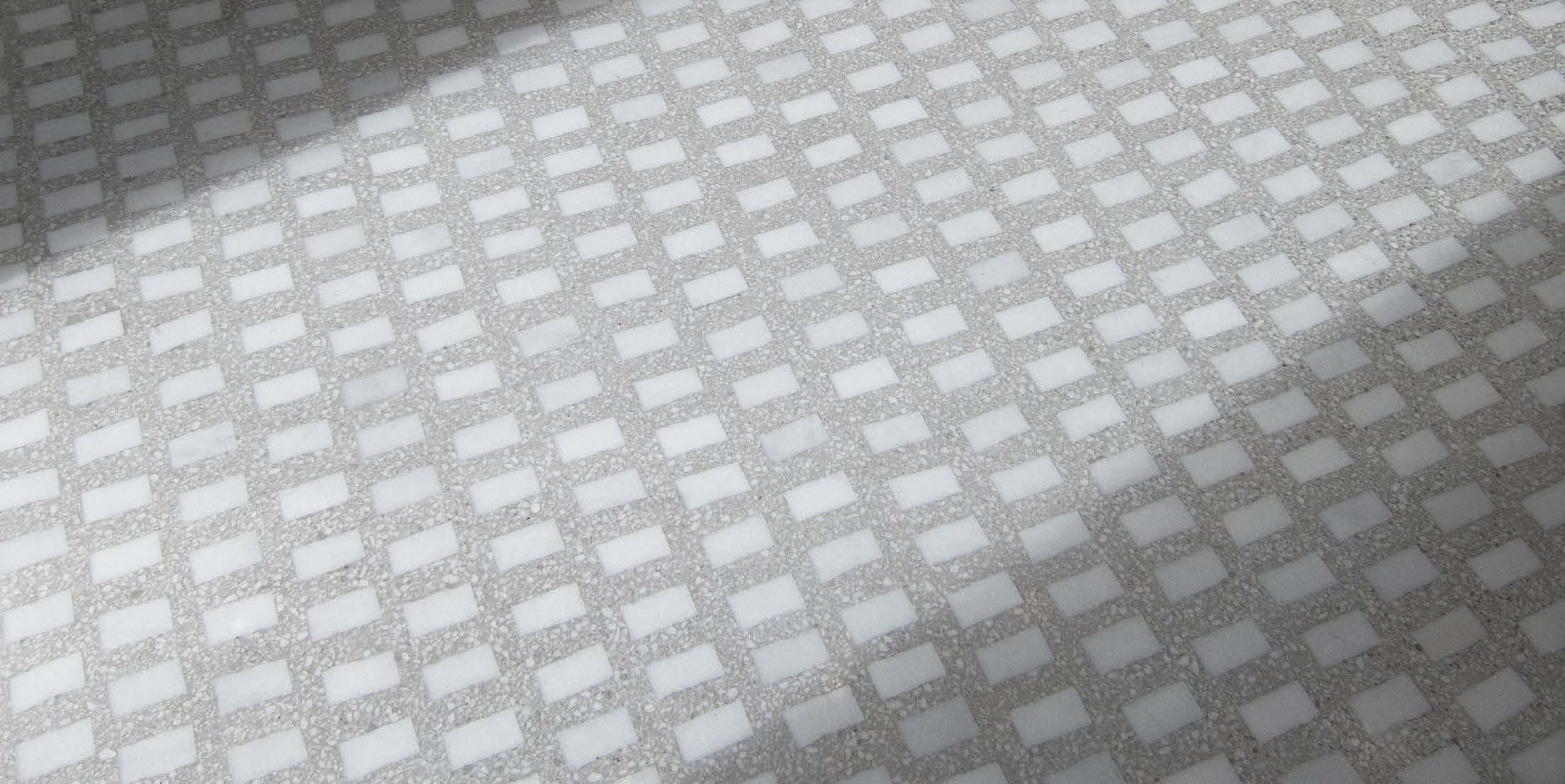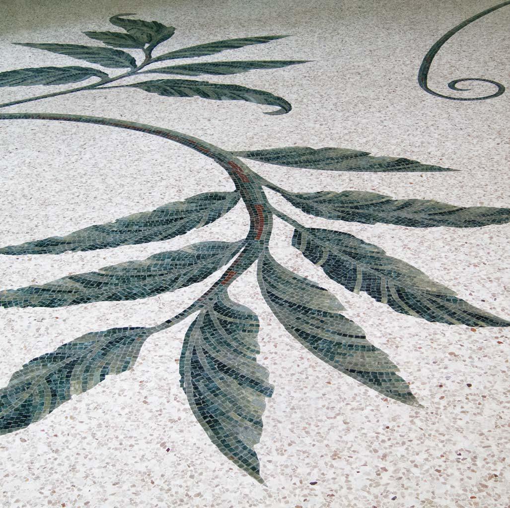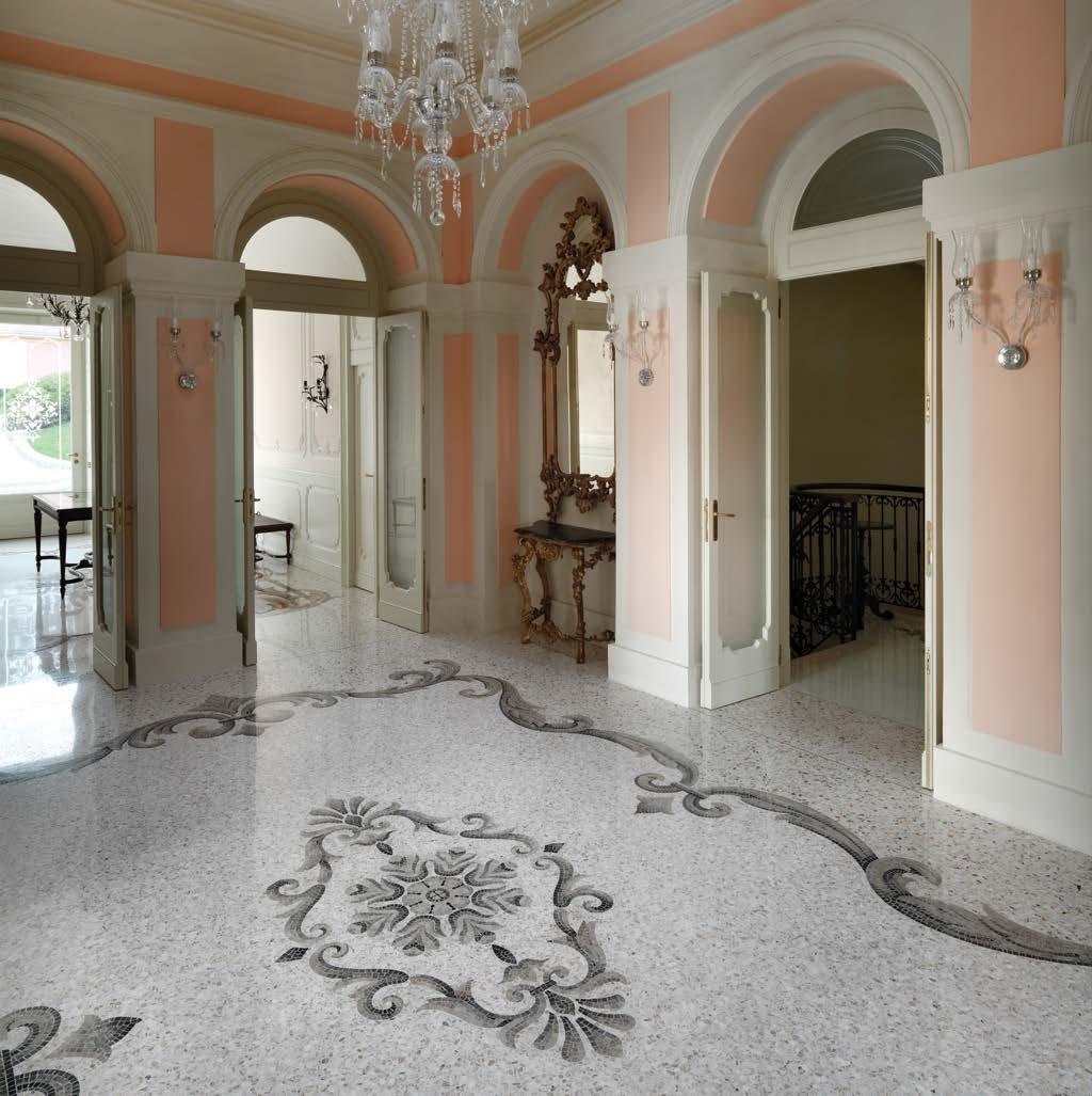 While maintaining and increasing its dedication to craftsmanship and the mentoring of new master artisans, Fantini Mosaici relaunched Venetian terrazzo, a process that involves the hand-setting of stones within a paving medium. It is frequently incorporated to elevate large-scale, heavily-used indoor or outdoor areas. In addition to Venetian terrazzo and traditional mosaics, other heritage techniques in the Fantini repertoire include Palladiana floor and pebble stone.
