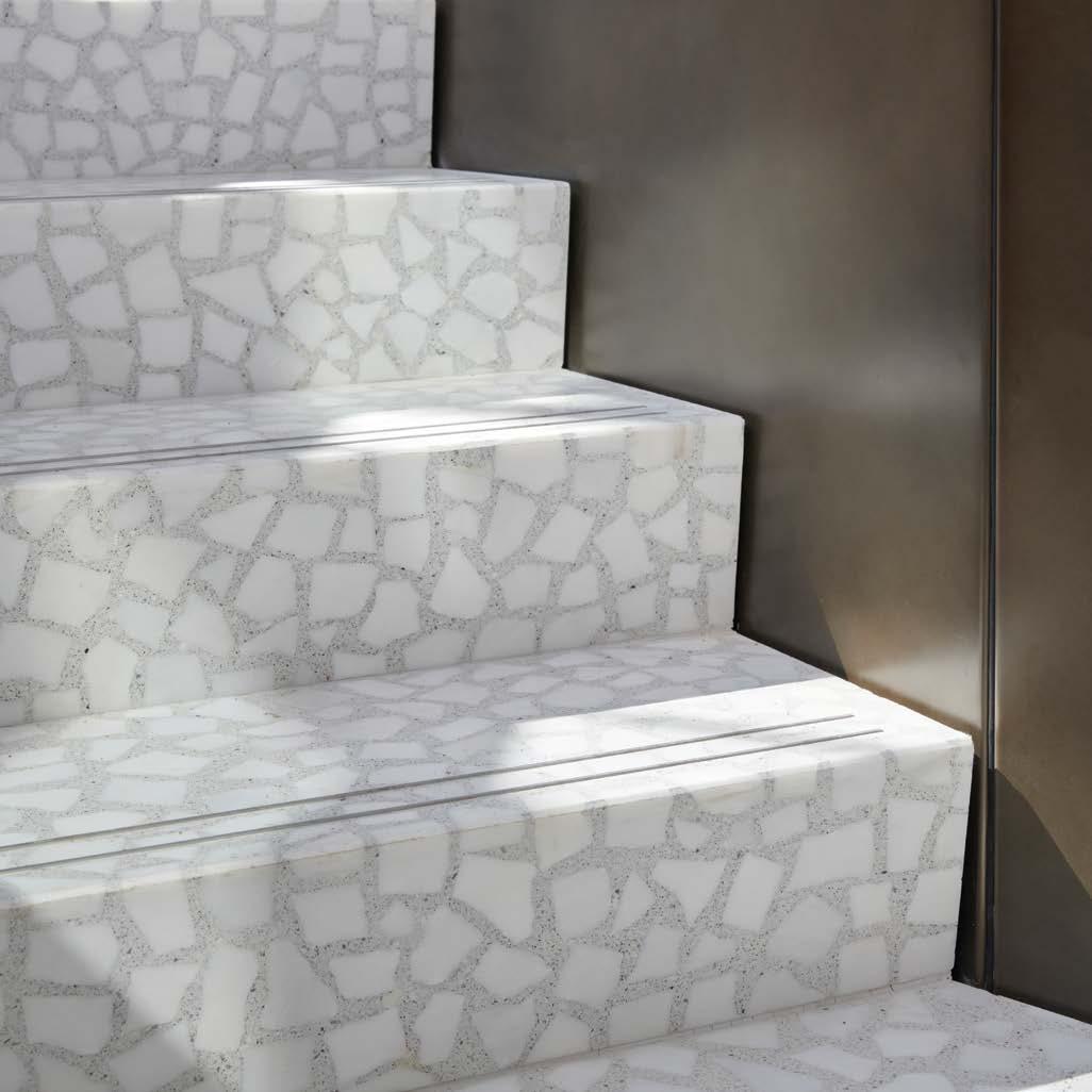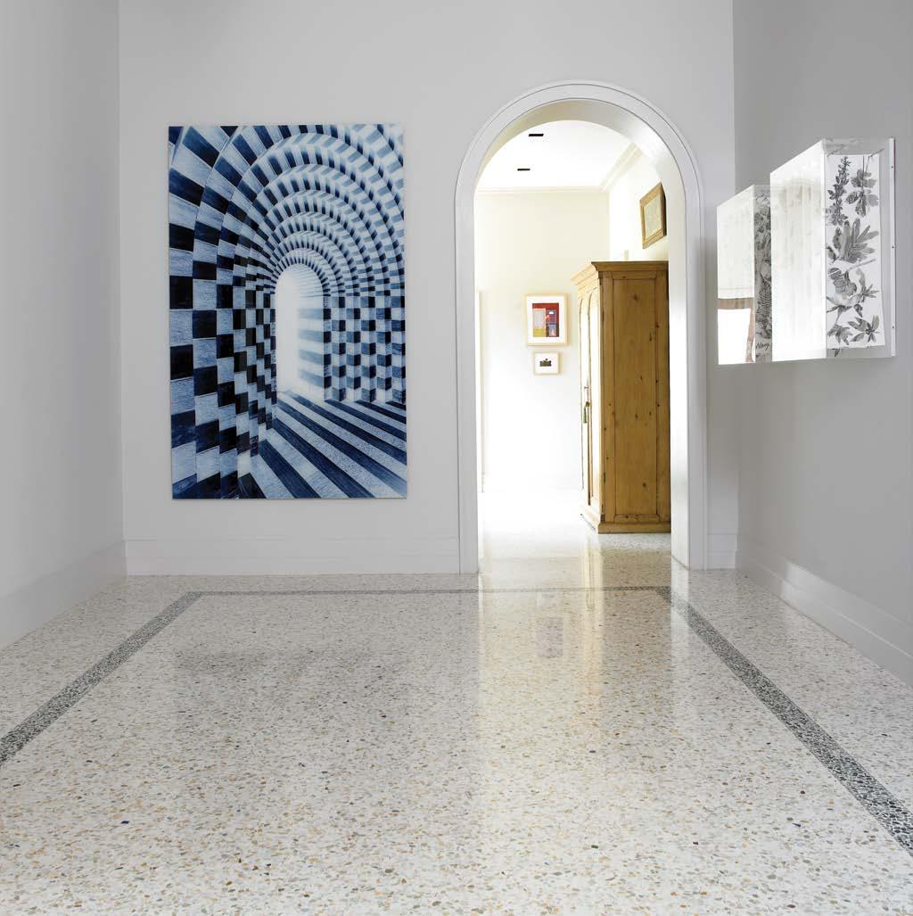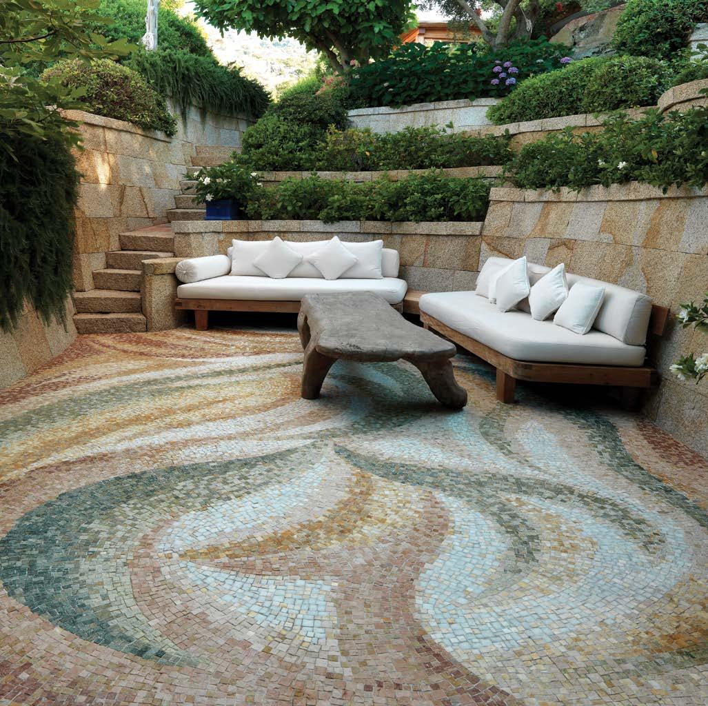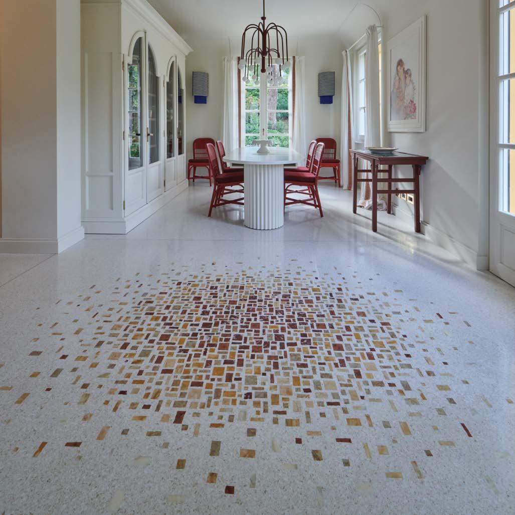 While maintaining and increasing its dedication to craftsmanship and the mentoring of new master artisans, Fantini Mosaici relaunched Venetian terrazzo, a process that involves the hand-setting of stones within a paving medium. It is frequently incorporated to elevate large-scale, heavily-used indoor or outdoor areas. In addition to Venetian terrazzo and traditional mosaics, other heritage techniques in the Fantini repertoire include Palladiana floor and pebble stone.