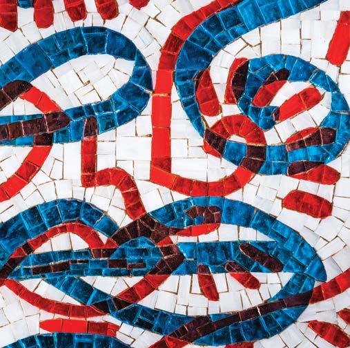 The Sheikh Zayed Grand Mosque in Abu Dhabi, UAE is sometimes referred to as the ‘Mosque of Flowers’ because of the fresh botanical motifs found throughout its 17,500-square metre sahan (courtyard), the largest continuous mosaic in the world. Created from precisely cut international marbles and semiprecious gemstones, the ancient artform sparkles with a contemporary aura. Expert engineers oversaw the assembly in Abu Dhabi of intricate mosaic panels created in Italy – some with a margin of error as small as just 5mm.