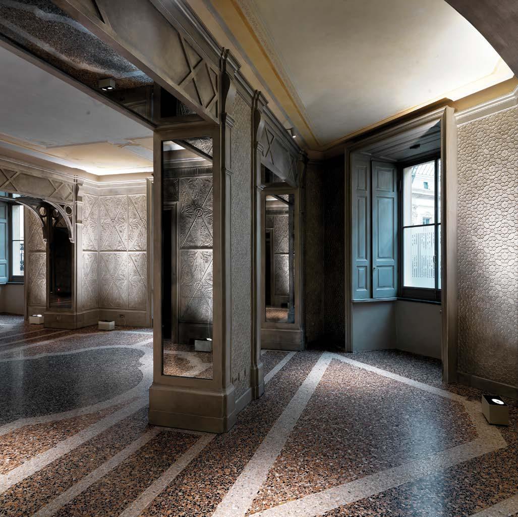 Contemporary post-war artist and industrial designer Bobo Piccoli united painting with the Fantini magic at the Palazzo Delle Stelline and the terrazzo floors of Macconago Castle, both located in Milan and brought to fruition by Fantini.