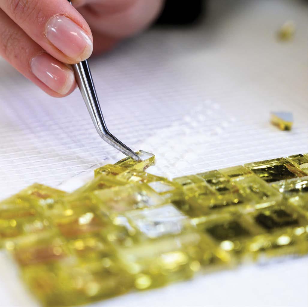 Seguendo le tradizioni artigianali del passato, Fantini Mosaici sceglie con attenzione le nuove tecniche e metodologie, incorporandole nei processi produttivi in modo da contribuire a creare un ambiente di lavoro più sicuro. L’azienda ha anche sviluppato un processo per sigillare l’oro all’interno delle tessere di vetro, creando così colori che danno luminescenza al vetro.
