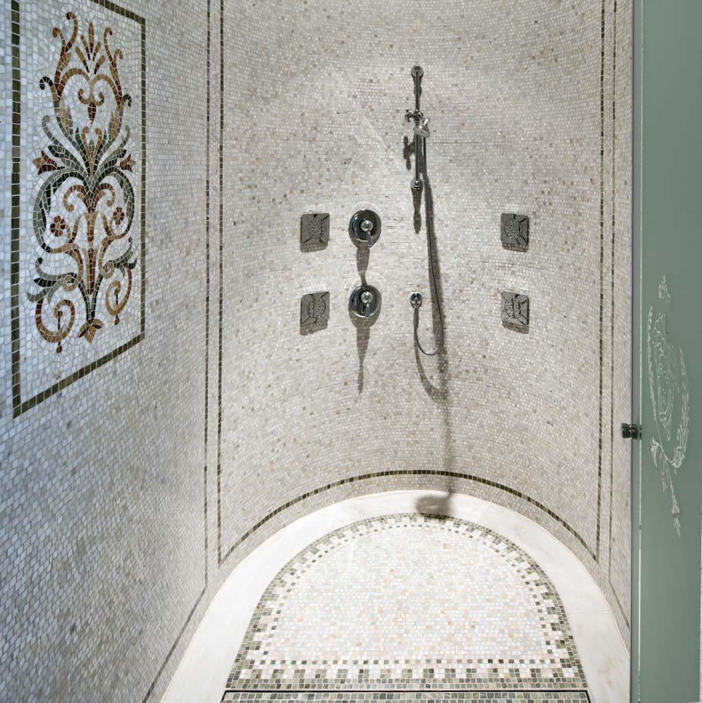 Greek and Roman motifs dominated early mosaics. Although the patterns of the ancients are still an integral facet of many modern mosaics, designs today are influenced by contemporary architects, artists, designers and – especially – each individual client. Fantini Mosaici works with an impressive array of in-house architects and collaborates with a Who’s Who of stellar architects, including Rodolfo Dordoni, Gianni Gamondi, Rem Koolhaas, Piero Lissoni, Michele De Lucchi, Peter Marino, Juan Pablo Molyneux Studio, Studio Peregalli, RDAI, Pierre-Yves Rochon, Antonio Citterio & Patricia Viel and Winch Design, among a galaxy of others.