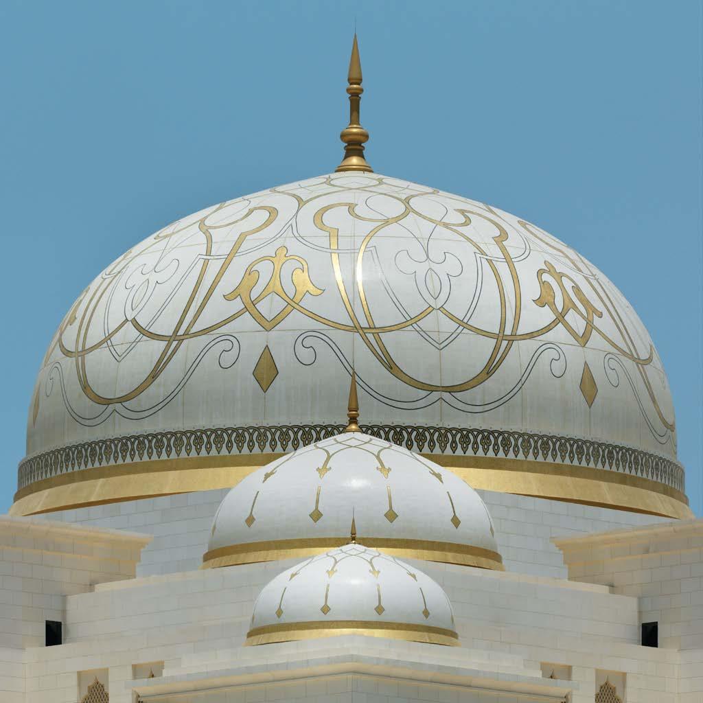 Ad Al Ain, negli Emirati Arabi Uniti, la Sheikh Khalifa Bin Zayed al Nahyan Mosque vanta la cupola a mosaico più grande del mondo, con un diametro di 86 metri. L’intera cupola è stata ricoperta di decorazioni calligrafiche realizzate in mosaico d’oro su uno sfondo di tessere bianche.