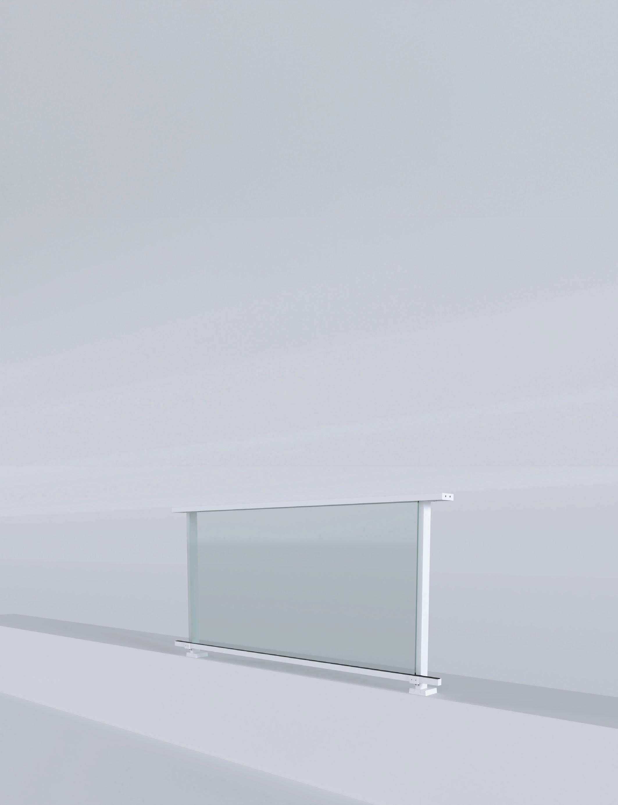 Adjust the position of the posts by acting on the adjusters and using a spirit level. Insert the base claddings. Insert glass support profile.