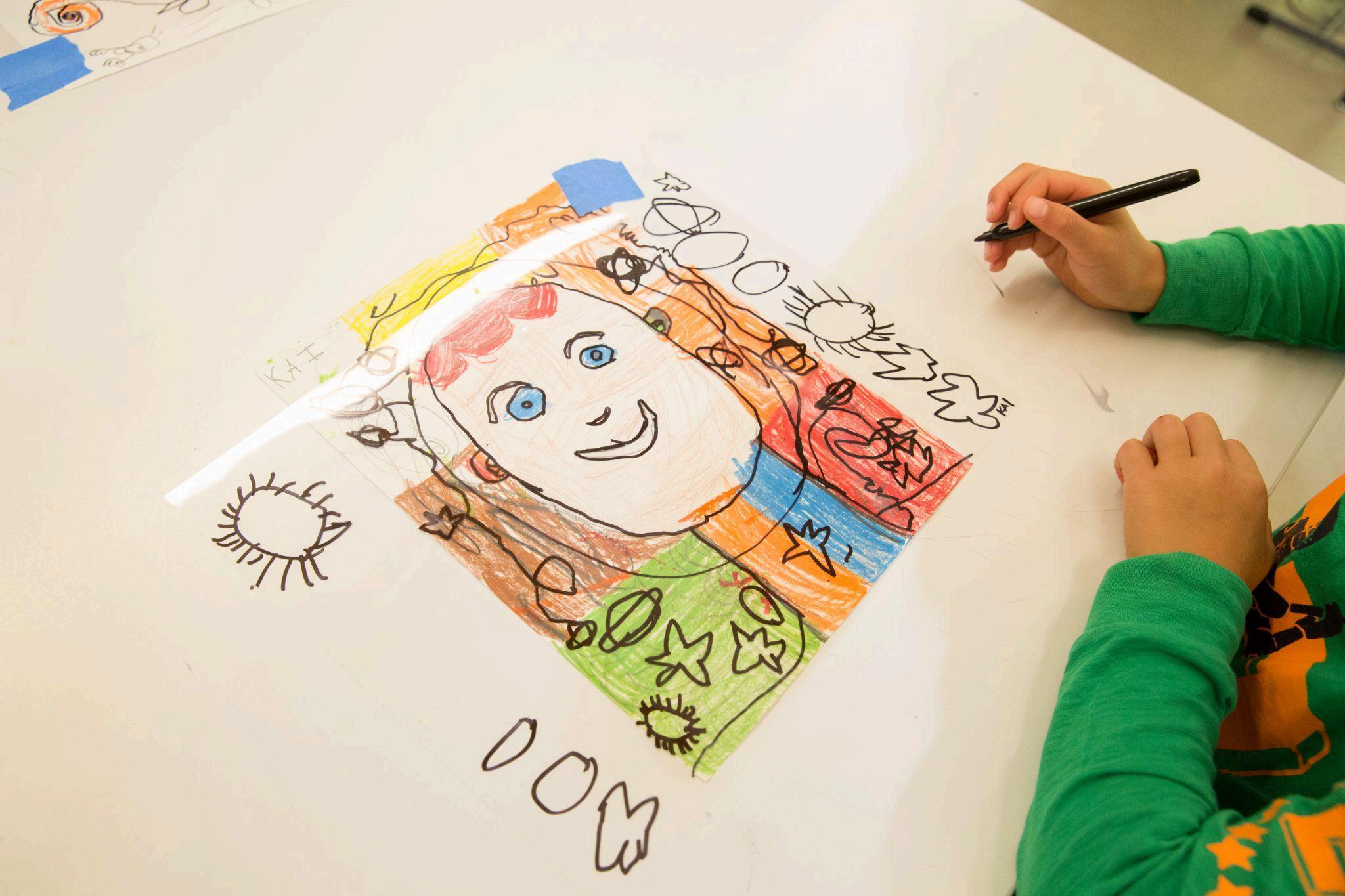 Kehinde Wiley, students create a two separate self-portraits; One, a simple contour line drawing on transparent acetate, representing the hopes, dreams and aspirations for their “future selves”; and the other is an inner portrait, which is rendered on canvas board, represents the artist as they see themselves in the present. This project invites students to actively develop critical thinking and critical feeling skills, while at the same time offers them opportunities to be introspective and imaginative in their art-making.