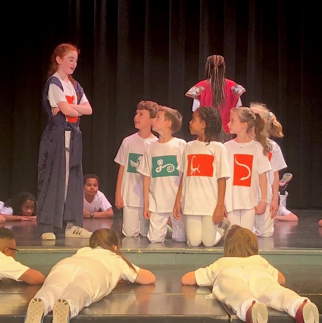 acts as a bridge to the second: a play presented later in the year, adapted from their books of legends or myths of Ancient Egypt. In Drama, Fourth Graders learn to work together in ensemble and learn to breathe, move, and speak together to tell a story to their audience. Their class play is an ensemble-based choral work, interwoven with solos, duets, and smaller groups.