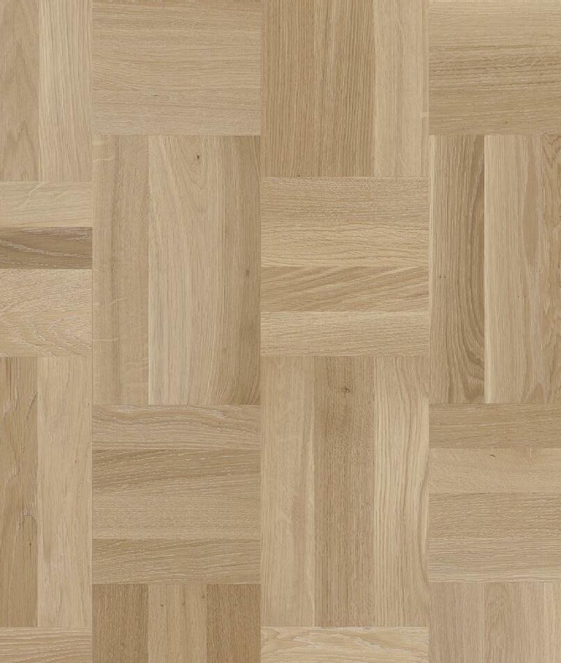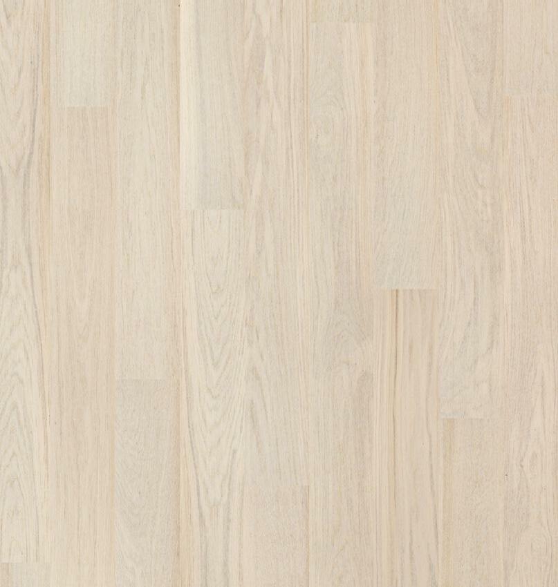 Dette gulvet harmonerer lekkert med alle nordiske interiørtrender. Landås i hvit eik, med sine tre staver skaper nydelige variasjoner og nyanser av eikematerialet. Et rimelig parkettgulv, uten at det har gått på akkord med kvalitet og estetikk.