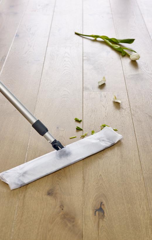 Harde gulv bør utsettes for så lite vann som mulig. Bruk derfor tørrmopp eller støvsuger til den daglige rengjøringen.