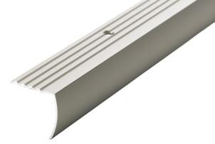 For overgang hvor det er nivåforskjell på inntil 10 mm mellom gulvmaterialene. Rillet i aluminium, glatt i foliert. Boret med skruer. Mål: H: 10 x B: 40 mm