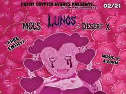 Filthy Cryptid Show - St. Peter-- 8 p.m., Tremendous Brewing Co., 228 W Mulberry St., St. Peter. Lungs is one of the great Midwestern sludge acts; they are powerful, somber and unforgettable. MOLS is arguably one of the greatest punk bands to ever come out of Mankato. And Desert X offers eerie, minimalistic sonic landscapes that you can’t help but be swept along with.
