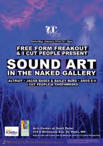 Opening - Faribault-- 5-7 p.m., Paradise Center for the Arts, 321 Central Ave N, Faribault. The gallery will display the Recovery Show from Sandra Sargent’s students. Shows through April 11.