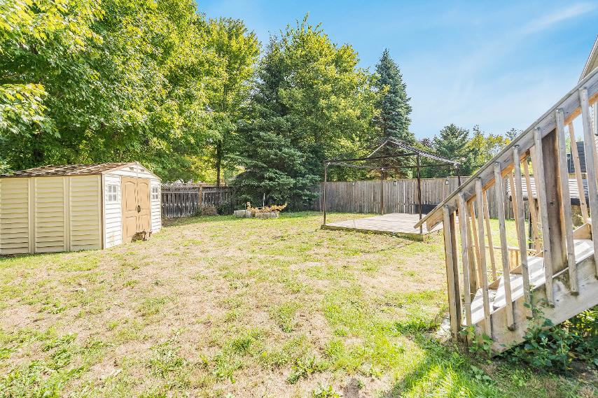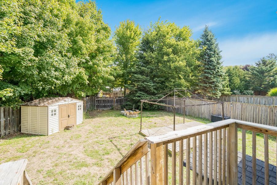 - Fullyfenced backyard offering a largebackdeck,plentyof greenspace,and a garden shed for extra storagespace