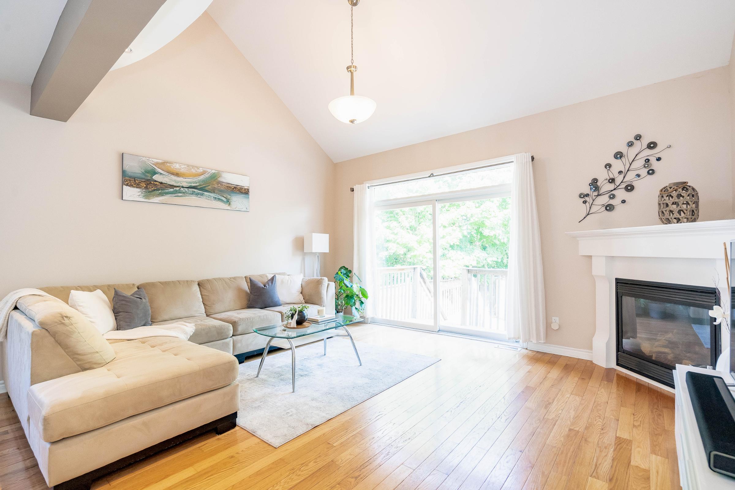 The thoughtfullayout includesan inviting eat-in kitchen,a cozygasfireplace,and a walkout to the deckleading to a fullyfenced backyard,offering a seamlessbalance of naturallight,comfort,and everydayfunctionality