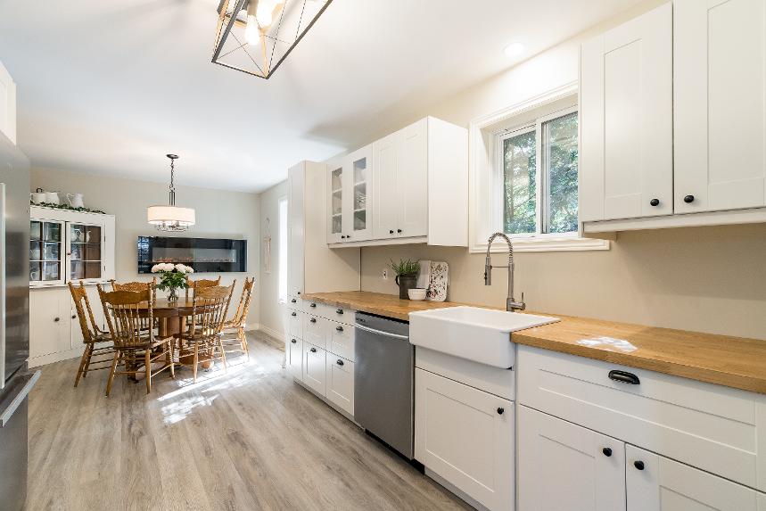 - Updated shaker-style cabinetrywith contrasting blackhardware