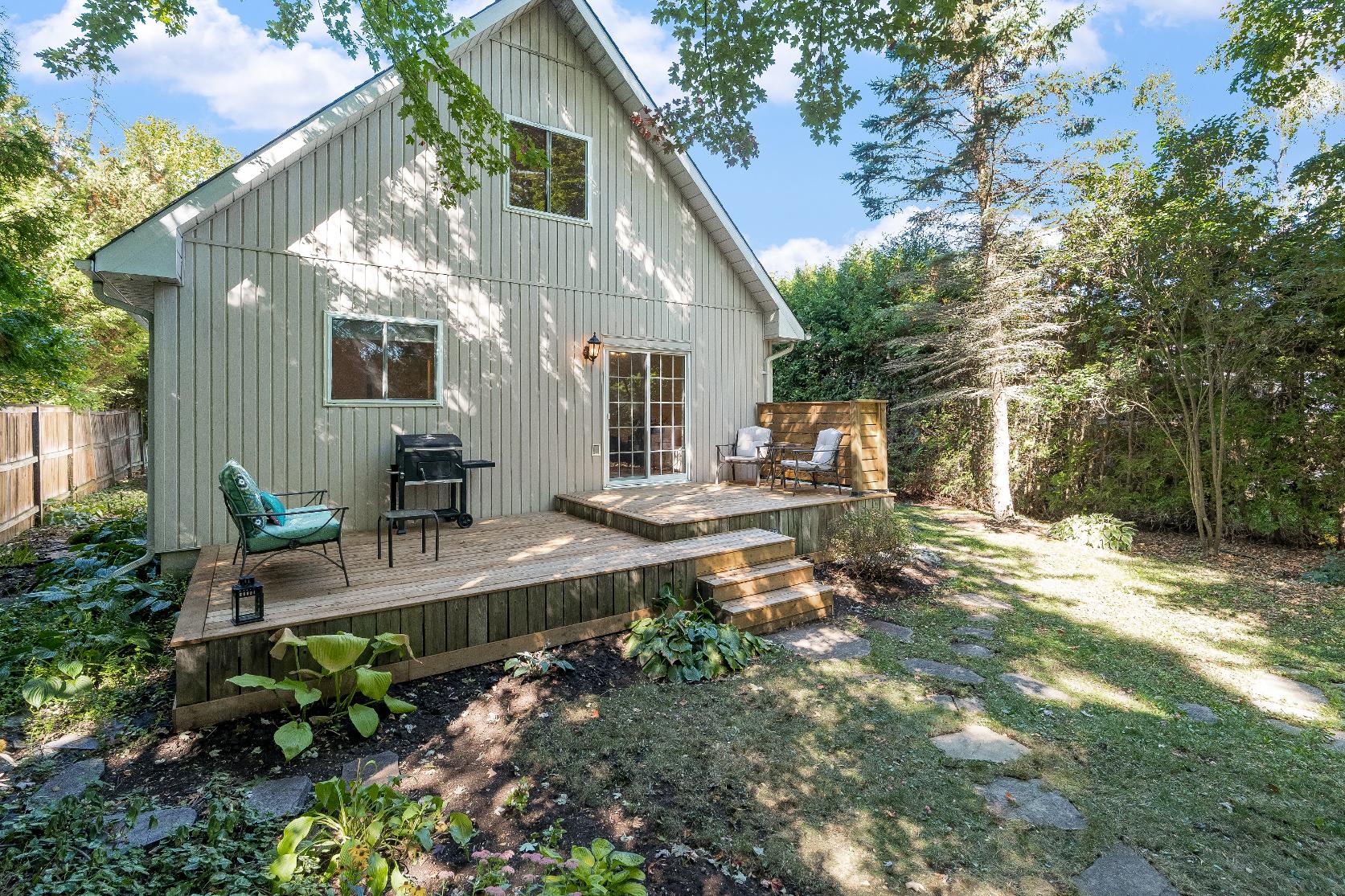 - Fullyfenced backyard enveloped by maturetreesforadded privacyand finished with a large backdeck tailored to outdoordining, entertaining,and relaxing