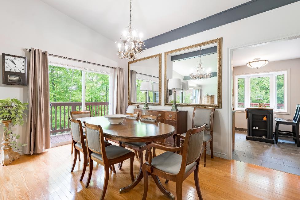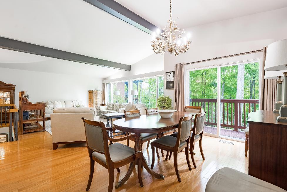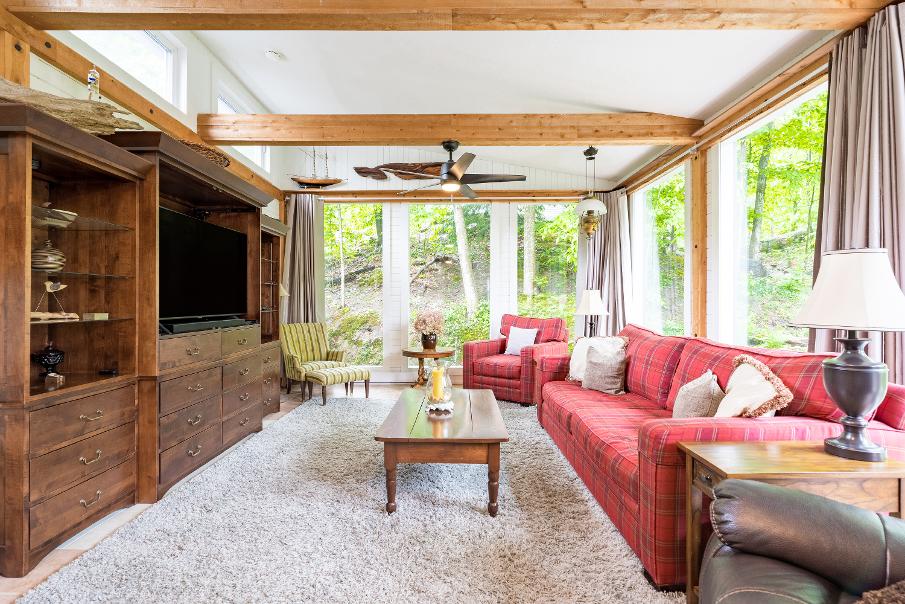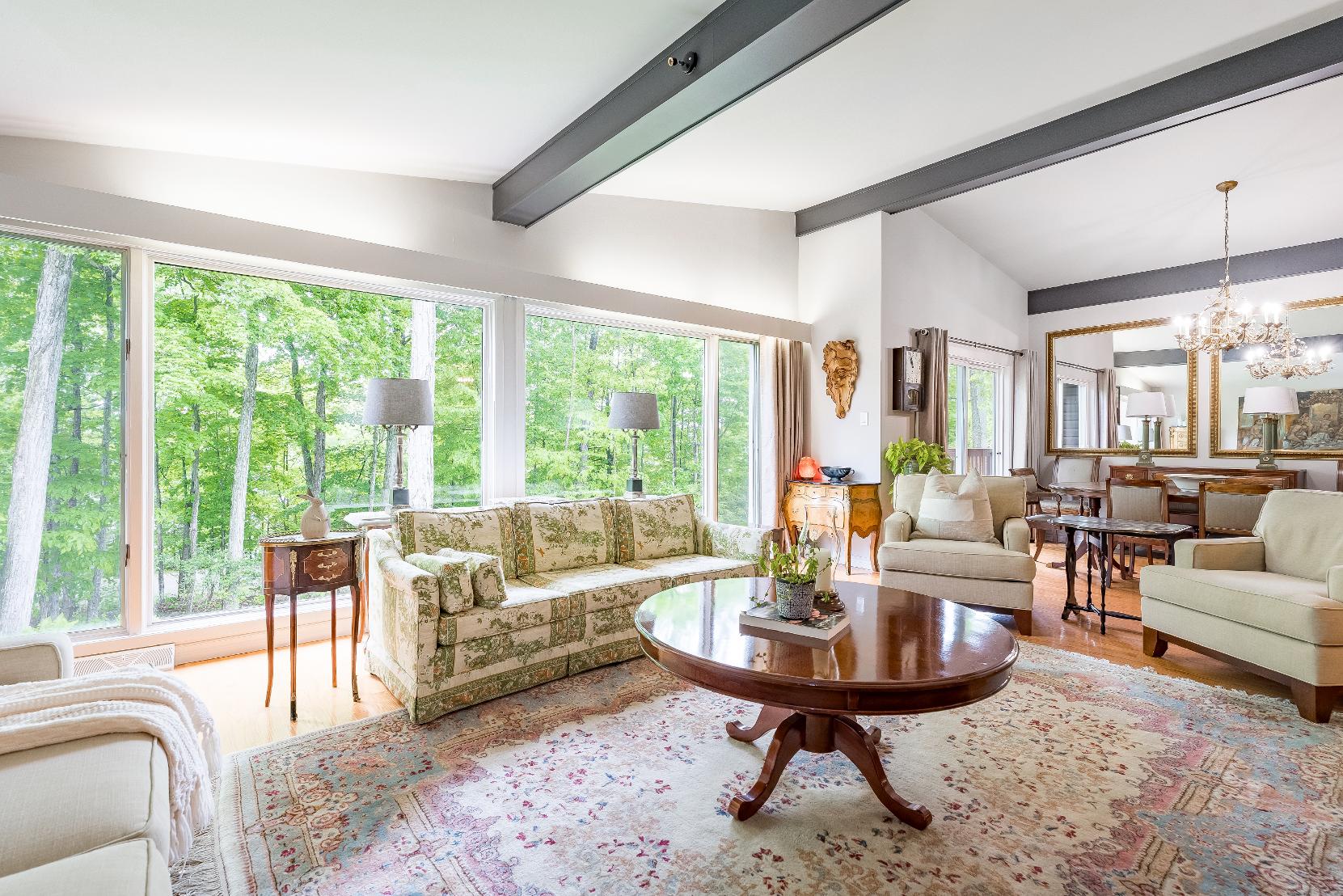 - Massivewall-to-wallwindowsframing beautifulviewsof the treed surround