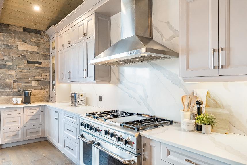 - Wealth of soft-closing cabinetrytopped with a crown moulding detail