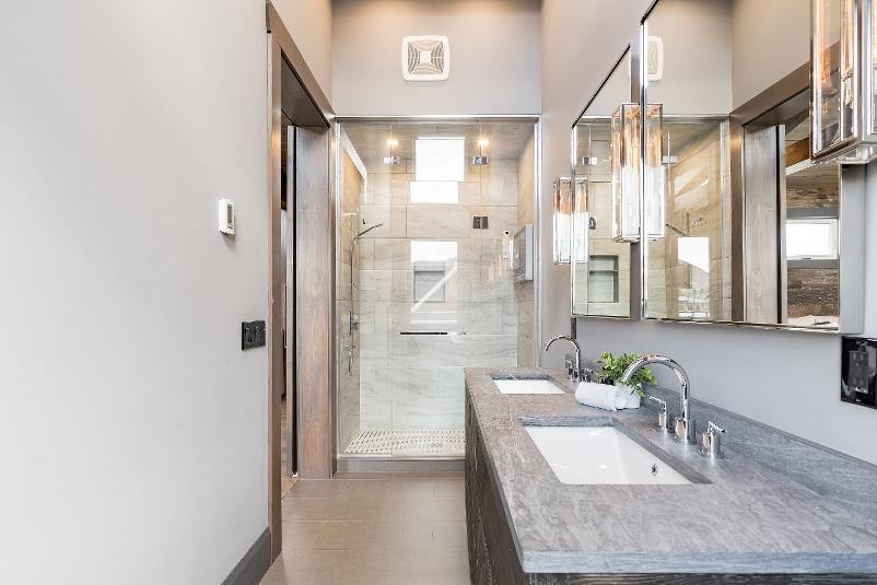 - Dualsinkvanitytopped with a quartzcountertop