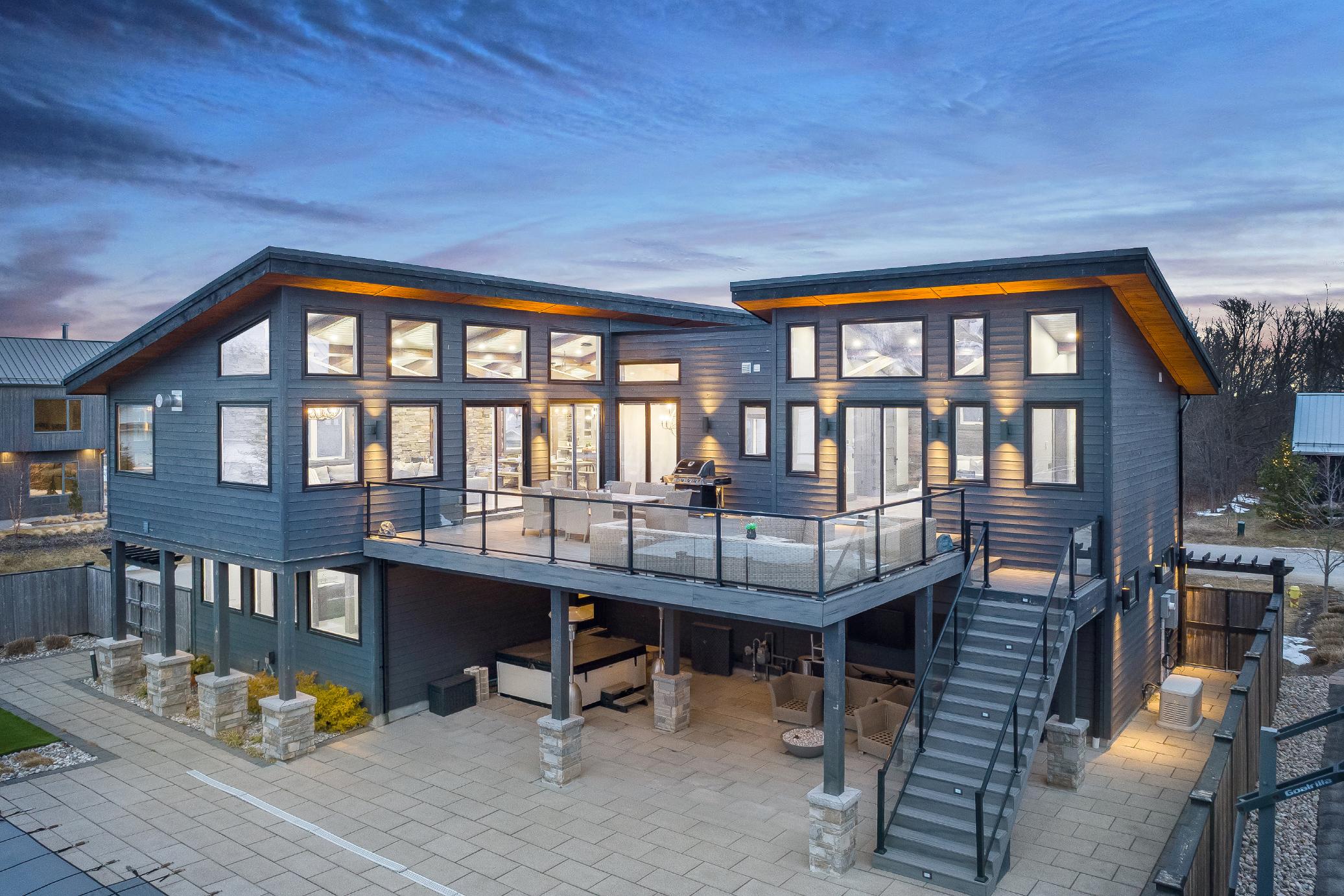 Stepsfrom Alpine and Craigleith SkiClubs,thisarchitecturallydistinctivecustom Nipissing Ridge chalet deliversthe ultimate four-season Blue Mountainlifestyle,combining refined design,advanced smart-hometechnology,and resort-styleoutdoorliving, designed with a reverse floorplan to capture skihillviews,thisimpressive residenceoffersfive bedroomsand four-and-a-half bathrooms