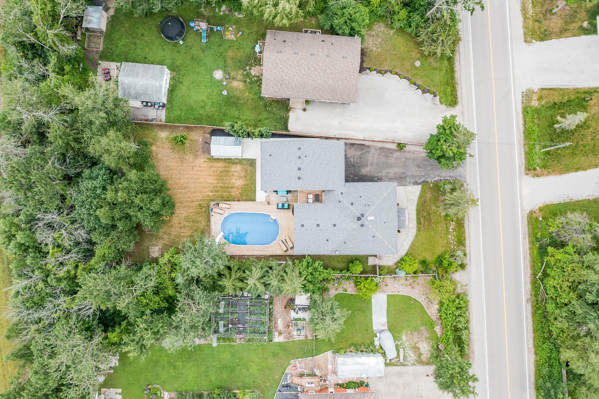 - Appreciate yourfullyfenced backyard equipped with a refreshing pool,a large deckforbarbequing and relaxing,and a new10'x16' garden shed